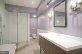 Fantastic opportunity to live in this impeccably remodeled 2-level Victorian conversion just north of Bloomingdale on a serene, tree-lined street set amongst stately early 1900's era rowhomes. LARGE! Living like a single-family house across nearly 2,000 sq ft, this luxury 2-bdrm offers an open main-level floor plan with soaring 12-ft ceilings, rich wide-plank cherry flooring throughout, and fantastic chef's kitchen with polished concrete countertops, frosted glass backsplash, and high-end stainless appliances. Spa-like updated en suite bathrooms make a statement in both generously sized bedrooms, and you'll love the hidden half-bath on the main living level! Enjoy a coffee out on your own private balcony in the morning, and conveyed parking space is right out back in your own secured access driveway! An unbeatable opportunity for the location, space, and condition - available starting November