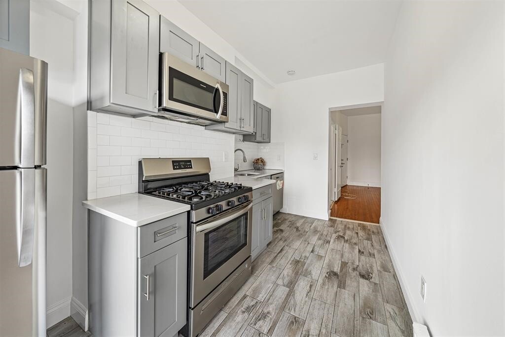 Step into this beautifully renovated, sun-drenched, and spacious 3-bedroom, 1-bath apartment with a den/home office, located on the second floor of a highly desirable building on Palisade Avenue in Jersey City Heights. One of the standout features is your private terrace with stunning NYC skyline views, the perfect place to relax and recharge. Inside, you’ll find a newly redesigned kitchen with solid wood cabinetry, stainless steel appliances including a refrigerator, stove, dishwasher, and microwave, plus stylish new tile flooring. Beautiful hard wood floors run throughout the home, adding warmth and character. The layout offers generous sizes throughout. The primary bedroom easily fits a king-sized bed, while the two additional rooms can comfortably accommodate full-sized beds, and possibly queens, making this home ideal for a variety of living arrangements. Convenience is unbeatable: enjoy easy access to NYC bus service and the PATH right outside your door. The 2nd Street Light Rail Station is just a 13-minute walk away, and Supremo Food Market is only 3 blocks away. You’ll also love being close to a vibrant mix of cafes, restaurants, bars, shops, and parks, with quick access to Hoboken and beyond. Laundrymat available 20 feet away it provides pick up and drop off services.
