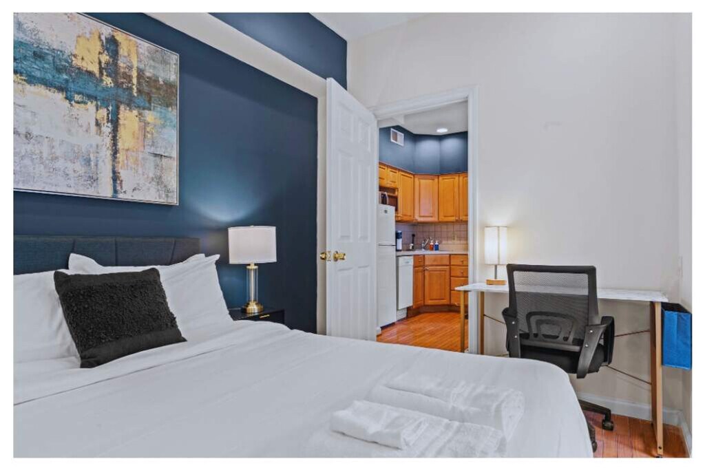 Located in the vibrant heart of Philadelphia, this apartment places you right in the sought-after Rittenhouse Square neighborhood. Renowned for its charm and elegance, Rittenhouse offers a perfect blend of upscale shopping, award-winning dining, and cozy cafés. Immerse yourself in the area’s rich cultural scene, from historic landmarks to celebrated theaters. With convenient public transit and a highly walkable setting, you’ll have the best of the city just steps from your door. Experience refined city living in this stylish 2-bedroom apartment, ideally located in Philadelphia’s iconic Rittenhouse Square—one of the city’s most vibrant and upscale neighborhoods. Step into a bright, thoughtfully designed space that balances comfort and sophistication. The open-concept living area features a plush sofa bed and flat-screen TV, creating the perfect spot to relax after a day of exploring. Adjacent is a sleek dining area with a modern table—ideal for enjoying meals, takeout, or catching up on work in a laid-back setting. Unwind in the serene primary bedroom, complete with a luxurious queen-sized bed, soft premium linens, ample closet space, and tasteful decor that creates a tranquil retreat. Tailored for flexibility, the second bedroom includes two comfortable bunk beds—perfect for families, kids, or friends traveling together. Its cozy, functional layout ensures a restful night’s sleep for everyone. Cook with ease in the fully equipped modern kitchen, featuring stainless steel appliances, quartz countertops, and generous cabinet space. Whether you’re preparing a full meal or just your morning coffee, everything you need is at your fingertips. The contemporary bathroom includes a spacious walk-in shower, a vanity with storage, and stylish fixtures. Fresh towels and essential toiletries are provided to make your stay effortless. Pets are allowed depending on size. The following additional per pet cleaning fee applies: 1 to 4 nights is $25 per night, 5 to 29 nights is $200, and 30 or more nights is $300. Step outside and soak in the charm of Rittenhouse. Stroll to designer boutiques, acclaimed restaurants, and cozy cafés—or unwind in the picturesque Rittenhouse Square Park just a few blocks away. With easy access to public transit and a highly walkable layout, the best of Philadelphia is right at your doorstep. Modern, welcoming, and ideally located—this beautifully appointed apartment is your perfect home base for an unforgettable stay in the City of Brotherly Love. Smoking is strictly prohibited inside the property. A cleaning fee of $500 will be charged for any violation. Check-in time is after 4 PM, and check-out time is by 10 AM. Late check-outs without prior approval will incur additional charges. Please dispose of garbage in the designated bins and do not leave trash outside the unit to avoid attracting pests. Treat the property and its contents with respect. Any damages will be charged to the guest.