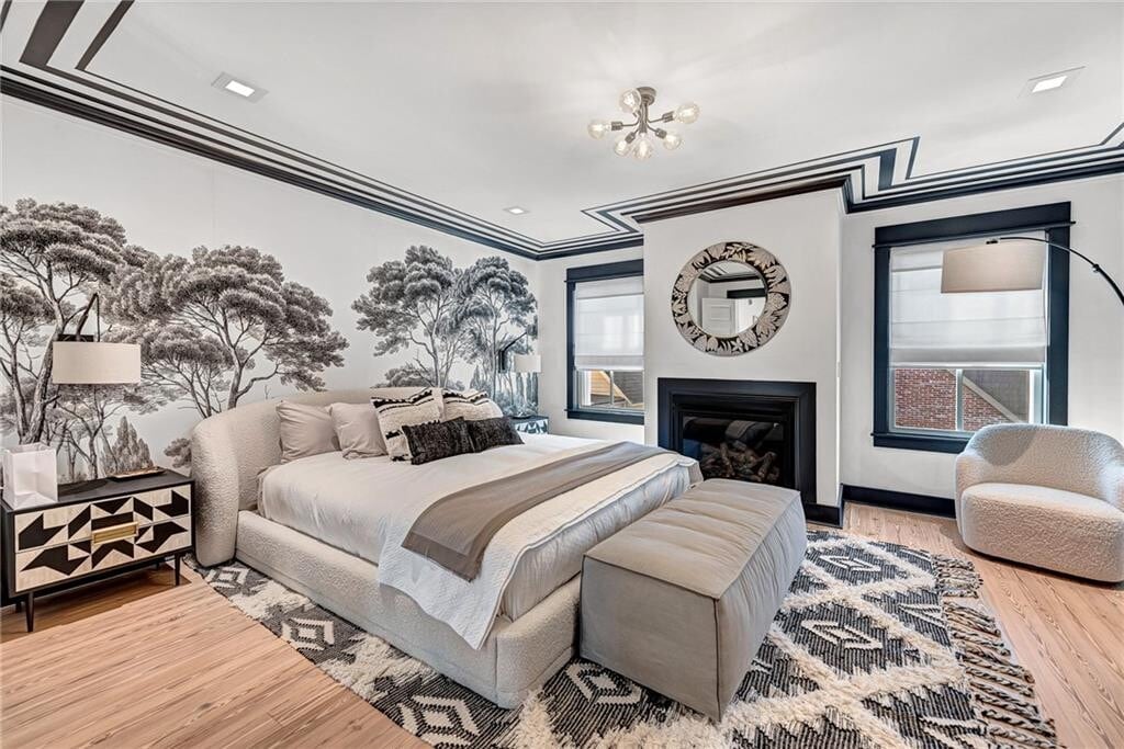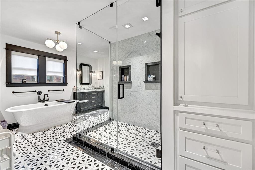 Luxury Furnished Living Located on one of the most desirable blocks in Downtown Bentonville, this exceptional home is offered fully furnished and professionally decorated. Thoughtfully designed with high-end designer finishes, the home features wood flooring throughout and an elegant, functional layout ideal for upscale urban living. The residence offers 4 spacious bedrooms, each with a private ensuite bath featuring beautifully tiled showers. The main level boasts a sophisticated kitchen and dining area with custom built-in cabinetry, a coffee bar and sink, and a convenient half bath. Two bedrooms with ensuite baths are located on the second level, with an additional two bedrooms and baths on the third level. Entertain with ease in the bonus room complete w/a wet bar and beverage refrig, or enjoy outdoor living on the covered back patio and dining area, surrounded by mature landscaping for a private, serene setting. Please note: the owner will retain one garage parking space and the ADU located above the garage. MLS# 1333776