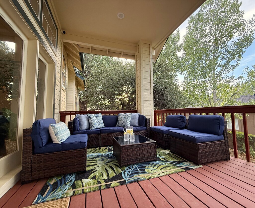 Sleeps 10 | 3 Bedrooms | 5 Beds | 3 Bathrooms Nestled in the scenic foothills of Prescott, Whisper Ridge offers the perfect blend of mountain tranquility and convenient access to Arizona's beloved historic downtown. This newly remodeled cottage-style home combines rustic charm with contemporary elegance, creating an inviting retreat for up to 10 guests. The place is perfect for family gatherings, holidays celebration, romantic gateways, outdoor adventure groups or corporate retreats. The Space Kitchen: Modern appliances, fully stocked for cooking meals for up to 10, plus coffee, tea, spices, and more! Dining Area: Enjoy meals with a view at the large dining table or cozy up by the window bench. Living Rooms: Relax by the gas fireplace or watch your favorite shows on the 75” TV. Need a quiet space? We've got that too! Master Suite: King bed with gorgeous front yard views and an en-suite bath with a walk-in shower. Guest Bedroom: Queen bed, perfect for relaxing after a day of exploring, plus a desk for any work that needs to be done. Upstairs Bedroom & Loft: The kids will love the mini play area, 85” TV, and arcade machine in the loft. Plus, the two sofas turn into full beds for extra sleeping space. Laundry: Washer and dryer with detergent provided. Outdoor Fun Step outside to discover your own private oasis. The professionally landscaped front and back yards provide serene spaces for relaxation, while the oversized deck becomes the natural gathering place for morning coffee, evening cocktails, or BBQ dinners under the Arizona stars. Amenities & Features Games Galore: Enjoy a massive arcade table in the loft with 400+ games to choose from. For the little ones, there's a dedicated arcade in the guest bedroom featuring 12 fun games. Plus, a variety of board games and puzzles provide entertainment for all ages! Climate Control: Smart Nest thermostat for perfect comfort year-round Connectivity: Complimentary high-speed WiFi (password in guestbook) Parking: Single-car garage plus additional parking for 3-4 vehicles in paved driveway Security: Outdoor ADT security cameras and Nest doorbell for your peace of mind Pet-Friendly: We welcome one dog under 35lbs (additional pets with host approval and cleaning fee) Location Highlights Minutes from downtown Prescott and famous Whiskey Row Watson & Willow Lakes just around the corner for hiking, biking, and scenic walks Easy access to restaurants and grocery stores Hiking trails and outdoor recreation at your doorstep House Guidelines Respecting Our Neighborhood: Whisper Ridge is located in a peaceful, serene community. To maintain the tranquil atmosphere our neighbors cherish, we ask that outdoor music and conversations on the deck be kept to a quiet level after 10 PM. Parties and large gatherings are not permitted. Pet Policy: While our front and back yards are fenced, please supervise your furry friends as the fencing is not completely escape-proof. We want to ensure their safety during your stay. Book Whisper Ridge for your next Prescott adventure – where mountain serenity meets small-town charm. Check-in: 3 PM & after Check-out:11 AM PLEASE CALL FOR AVAILABILITY AND RATES VACATION RENTAL BEAR CREEK REAL ESTATE AND PROPERTY MANAGEMENT LC662131000