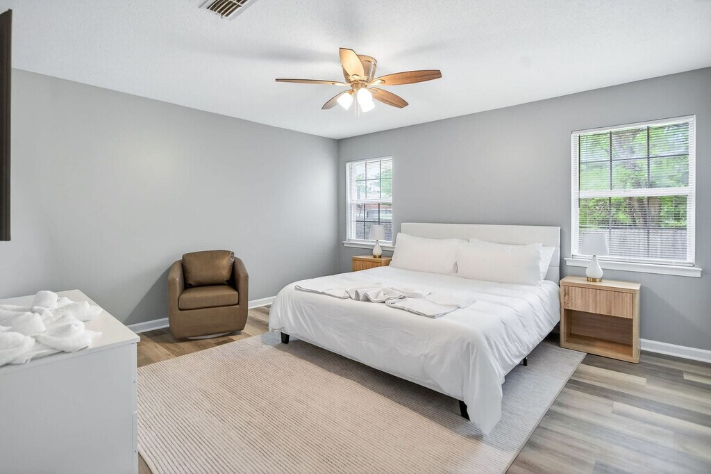 The advertised rate of $4,839/month is the lowest available price, based on a 30 day(s) stay with a move-in date of May 1, 2026. Rates vary depending on the duration of stay, season, and other parameters. For exact pricing and additional pricing components, please visit our website and enter your desired move-in and move-out dates. The rate is applicable when billed upfront; it can be higher if billed in multiple payments. Welcome to your family-friendly getaway in Montgomery! Feel at home in this freshly renovated 4-bedroom home that comfortably sleeps up to 10 guests. This home features an updated kitchen stocked for home cooking, fast Wi-Fi, a smart TV for streaming, and a family/game room with arcade-style games and seating. Space is available for pets for a fee. Driveway parking is available for multiple vehicles. Located in a quiet, established residential neighborhood in East Montgomery, this home offers peaceful streets while staying close to everything Montgomery has to offer. You'll be minutes from Downtown Montgomery, the Riverwalk & Riverfront Park, Maxwell AFB, and Alabama State University. Nearby highlights include Maxwell Air Force Base, Downtown Montgomery & Riverwalk, Alabama State University & ASU Stadium, Montgomery Zoo & Museum, and Civil Rights landmarks and museums. A car is recommended for getting around, but rideshare services like Uber and Lyft are readily available. This is a non-smoking home, and no parties or events are allowed. Small pets are allowed with a fee. The fully fenced yard is available for outdoor enjoyment and is ideal for short-term and extended stays. [SI]