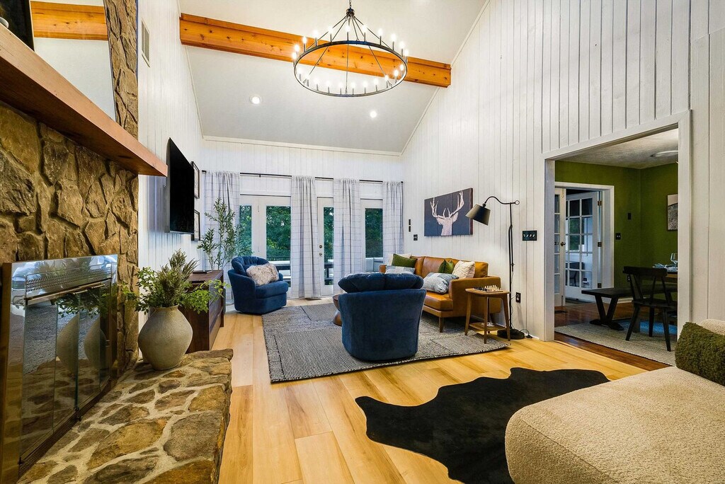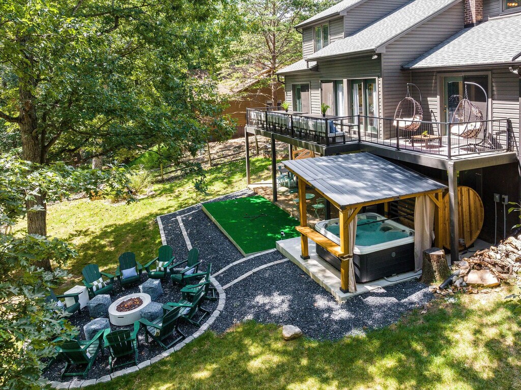 The advertised rate of $10,457/month is the lowest available price, based on a 1 month(s) stay with a move-in date of September 7, 2026. Rates vary depending on the duration of stay, season, and other parameters. For exact pricing and additional pricing components, please visit our website and enter your desired move-in and move-out dates. The rate is applicable when billed upfront; it can be higher if billed in multiple payments. This 5-bedroom home in McGaheysville, VA, offers everything you need for an amazing vacation. With an expansive deck, private sauna, hot tub, and fire pit, this retreat is designed for relaxation and entertainment. The home features a movie theater with a wet bar and popcorn machine, board games, darts, pool table, foosball, arcade games, putt-putt, and a BBQ grill. The fully stocked kitchen and dedicated workspace ensure comfort and convenience. Family and dog-friendly, the property provides ample parking. Welcome to your ultimate mountain getaway in McGaheysville, VA! This spacious 5-bedroom, 3.5-bathroom retreat is perfect for big groups, comfortably hosting up to 14 guests. Whether planning a family reunion or a multi-family vacation, this home offers cozy gathering spaces across multiple levels. Enjoy game nights, movie marathons, or unwind in the peaceful mountain atmosphere. Located minutes from Massanutten Resort, adventure is always nearby, whether hitting the slopes, ziplining, golfing, or enjoying the indoor waterpark. After exploring, return to your private mountain retreat for relaxation and unforgettable memories. Up to 2 dogs are allowed for $125 per stay, but no cats, please. We ask that your dog is crate trained and that you pick up after your dog. Parking is available in the driveway for up to 5 cars, with no street parking allowed. Nearby attractions include Massanutten Indoor WaterPark, just 2 miles away, offering splashy fun for all ages. Massanutten Family Adventure Park is also 2 miles away, featuring zip-lining, a climbing wall, gem mining, and summer tubing. Shenandoah National Park and Skyline Drive are 12 miles away, providing breathtaking views and hiking trails. Grand Caverns is 16 miles away, and White Oak Lavender Farm and Purple WOLF Vineyard are 12 miles away. Local dining options include Thunderbird Café, Hank’s Grille & Catering, Romano’s Italian Bistro, Santa Fe Mexican Grille, and Campfire Grill at Massanutten Resort, all within a few miles. Check-in is at 4pm and check-out is at 10am. No parties are allowed, and violations may result in immediate termination of the stay. An exterior camera is installed solely to monitor the cleaning team for quality and security purposes. Guests must be 21 years or older to book this property. The fireplace is not available for guest use at this time. The home includes a dedicated workspace, ensuring a comfortable environment for remote work. A laptop computer is not included. [SI]