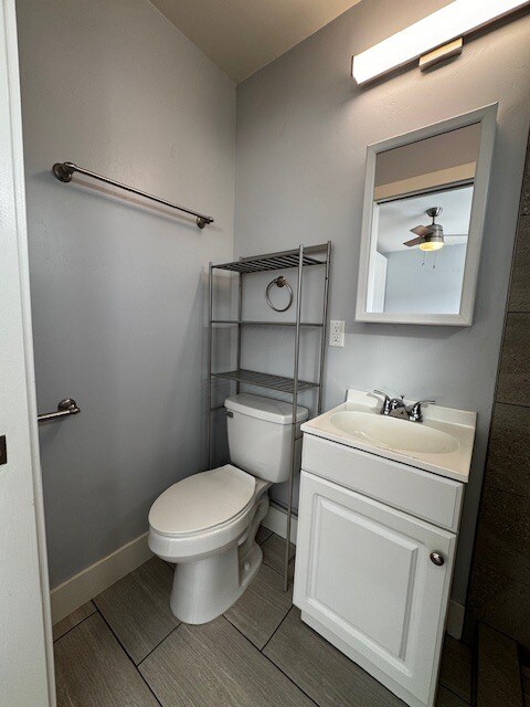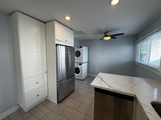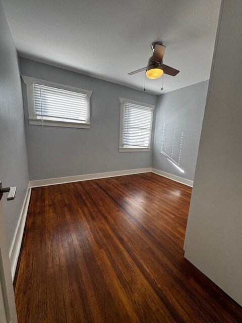 Updated 2 bed - 2 bath house. hardwood floors, ceiling fans, 2" wide plank blinds and electric heat & air conditioning. Both bathrooms updated. Kitchen has stainless appliances, dishwasher, microwave and garbage disposal. The stacked washer/dryer is located in the kitchen. The master bedroom has 2 closets. This home also has a 2 car driveway. NO PETS This unit is the front unit on the property. There's a small unit on the back of this house that is currently leased. A section of the garage is available for tenant storage.
