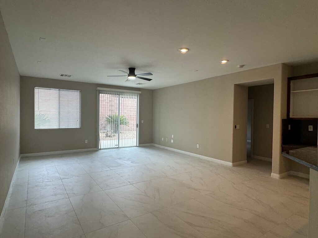 Beautiful single-story home featuring 4 bedrooms, 2 bathrooms, and a spacious 3-car garage. Enjoy an open floor plan with a large kitchen that offers a generous breakfast bar, granite countertops, and plenty of room to entertain. The home includes new tile flooring throughout and ceiling fans in every room. The private backyard provides an inviting space to relax or host gatherings. Conveniently located near shopping centers with quick access to the 215 freeway. "Finishing last details home will be professionally cleaned."