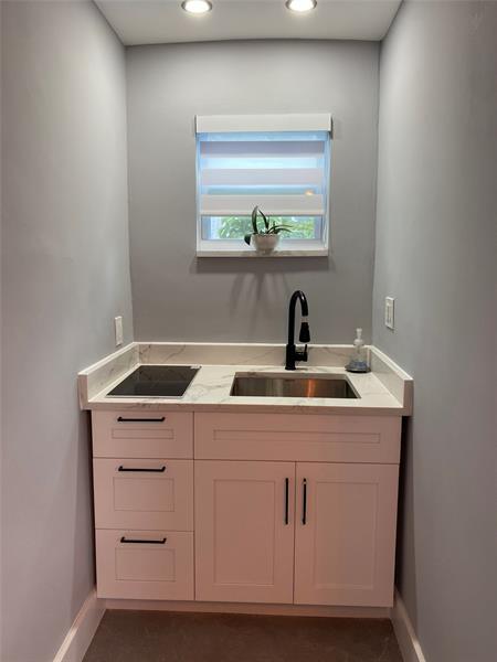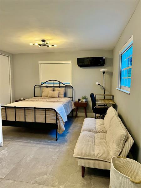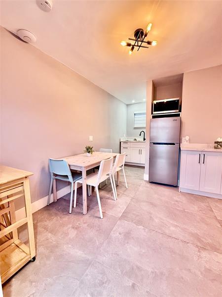 YOUR SEARCH IS OVER!!! This cozy, modern, open concept, fully furnished, studio apartment has everything you need to live a very comfortable life, just bring your toothbrush. Functional kitchen with quartz counter tops, a double built in Induction cooktop. Stainless steel appliances. The kitchen has white custom made cabinetry to storage all your needs. Brand new washer and dryer combo in. Everything to make your life easier. Very spacious customized closet. Full size bathroom, vanity with a beautiful oval frameless LED wall-mounted Anti-Fog mirror. Tempered glass shower enclosure with marble mosaic finish. Spanish first class porcelain floors throughout the unit. Stunning shared back yard, fruit trees and lots of greens. The unit is in the perfect Location, close to everything you need.