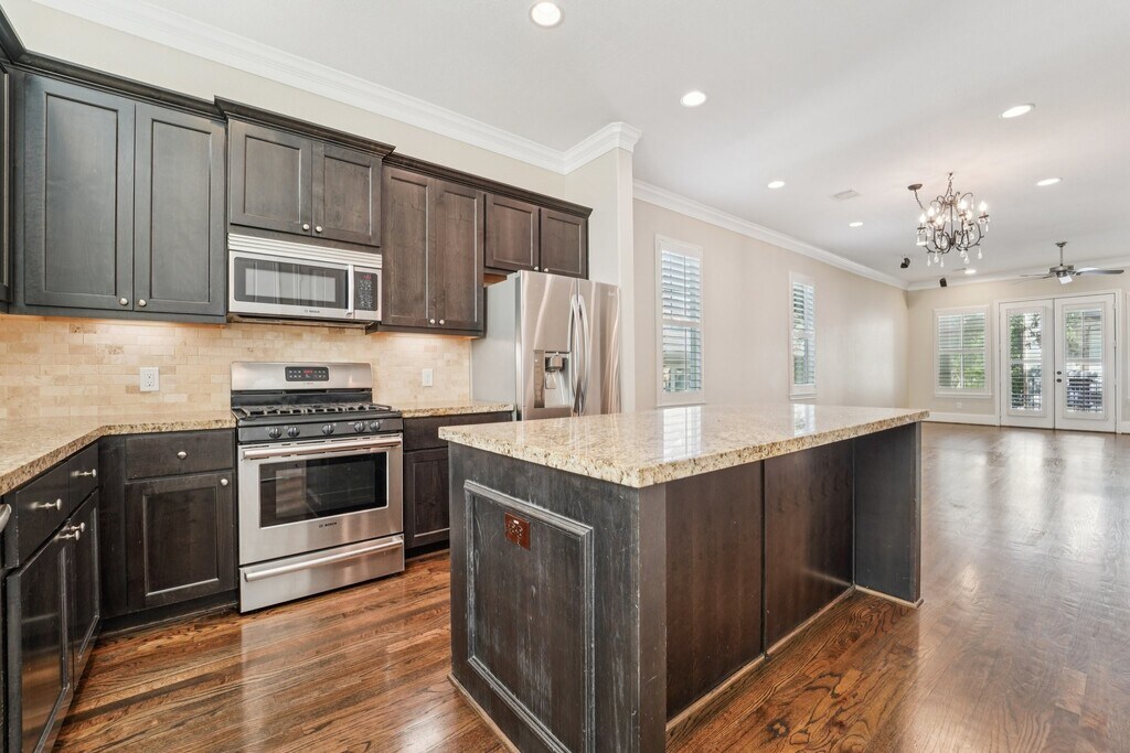 Tucked inside a private,gated community,this stunning three-story home blends style,comfort,and a prime location. With 3 spacious bedrooms and 3.5 baths,it offers a layout perfect for entertaining and daily living. Enjoy soaring ceilings,wood floors,and abundant natural light. The second-floor living space features a chef-style kitchen with granite counters,stainless steel appliances,and a large island that flows into the open living and dining areas. Sip coffee or grill on your private balcony,or unwind in the fully fenced backyard — a rare find in this area. The oversized primary suite includes a spa-like bath with dual vanities,soaking tub,and walk-in closet. Each bedroom has its own en-suite bath,ideal for guests or roommates. Steps from 19th Street shops,top restaurants,and nightlife,plus close to trails,H-E-B,and major freeways. MLS# 93546341