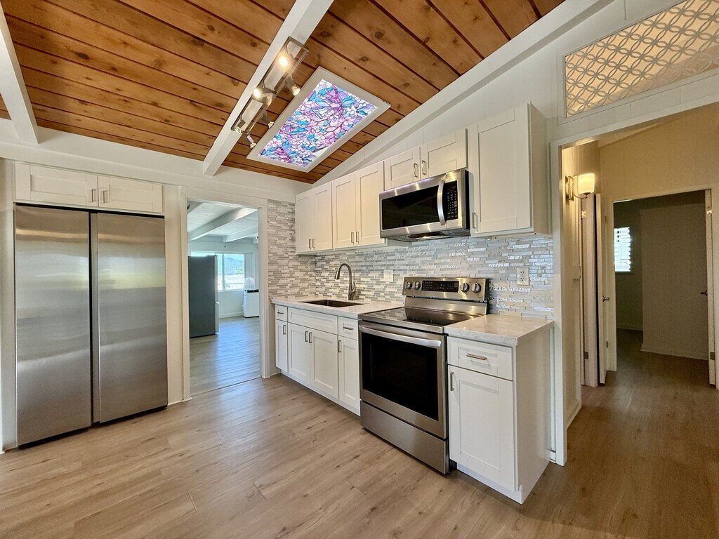 Spacious 4-bedroom, 2-bath Single Level home located in the desirable Pacific Palisades neighborhood of Pearl City. This well-maintained home features a large primary bedroom offering a comfortable private retreat, along with a bright family room complete with a wet bar—perfect for entertaining or relaxing at home. The open-concept kitchen boasts quartz countertops, stainless steel appliances, and a functional layout that flows easily into the main living areas. Enjoy indoor-outdoor living with a wraparound yard and a back lanai ideal for gatherings, BBQs, or quiet evenings. A large storage unit located in the yard provides plenty of extra space for tools, equipment, or seasonal items. Conveniently located near shopping, dining, parks, freeway access, and just minutes from Pearl Harbor Naval Base, while still nestled in a quiet residential community—an excellent opportunity to enjoy comfortable island living. Yard Service Included. Application Fee, Credit Check, Non smoking, Pets upon approval. Contact agent, Rosa Gomes via text OR email Spacious 4-bedroom, 2-bath Single Level home located in the desirable Pacific Palisades neighborhood of Pearl City. This well-maintained home features a large primary bedroom offering a comfortable private retreat, along with a bright family room complete with a wet bar—perfect for entertaining or relaxing at home. The open-concept kitchen boasts quartz countertops, stainless steel appliances, and a functional layout that flows easily into the main living areas. Enjoy indoor-outdoor living with a wraparound yard and a back lanai ideal for gatherings, BBQs, or quiet evenings. A large storage unit located in the yard provides plenty of extra space for tools, equipment, or seasonal items. Conveniently located near shopping, dining, parks, freeway access, and just minutes from Pearl Harbor Naval Base, while still nestled in a quiet residential community—an excellent opportunity to enjoy comfortable island living. Yard Service Included. Application Fee, Credit Check, Non smoking, Pets upon approval. Contact agent, Rosa Gomes via text OR email .