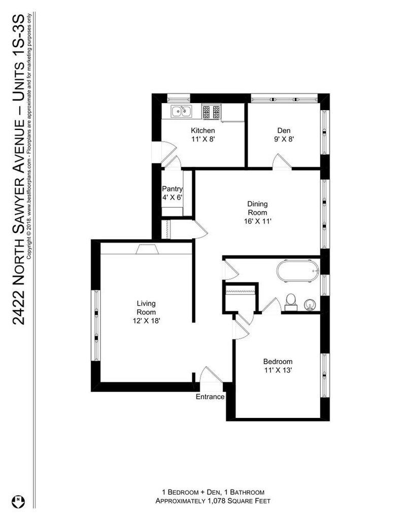 There is currently a 1 Bed 1 Bath Condo for rent with 1,078 sq ft listed at 2422 N Sawyer Ave. It is Available February 1, 2026.