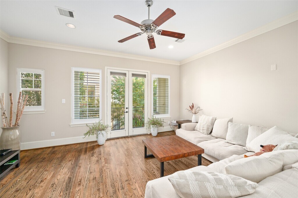 3 bed 3.5 bath home tucked into a quiet gated community includes spacious outdoor patio area. First floor bedroom serves as a potential primary bedroom opening into the garden. Primary bath features large tub and tons of natural light. Open concept living space allows easy access to kitchen from dining area. Living room opens to a tranquil outdoor balcony overlooking the grounds. Kitchen includes granite counter tops and stainless steel appliances. Short term guest parking available. You cannot beat the location. Within blocks are a variety of pubs and restaurants,an HEB grocery store and a walking trail along White Oak Bayou. And if you need quick access to freeways,610 is just a few blocks away. Make sure this one is on your list! MLS# 56719305