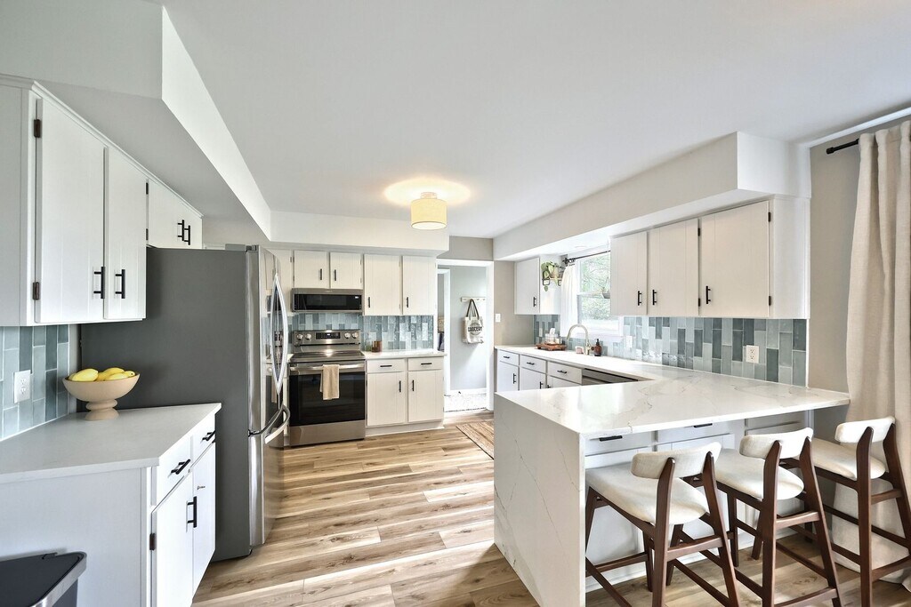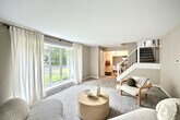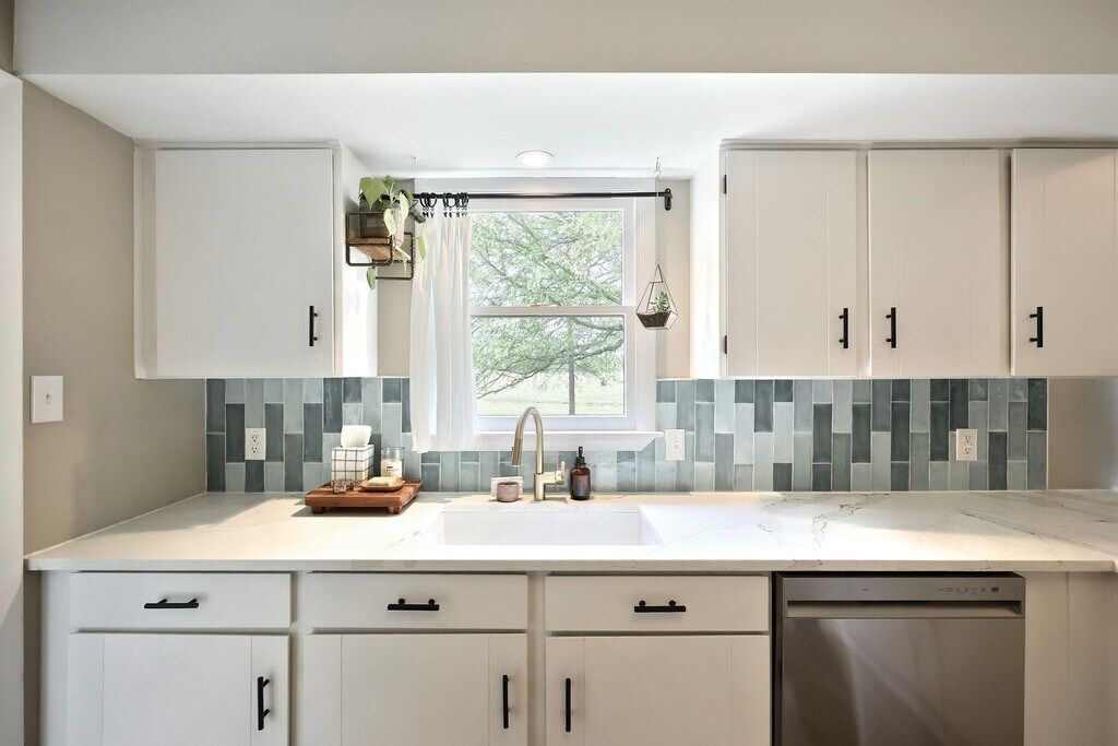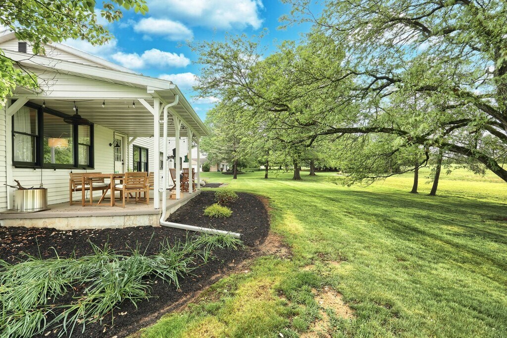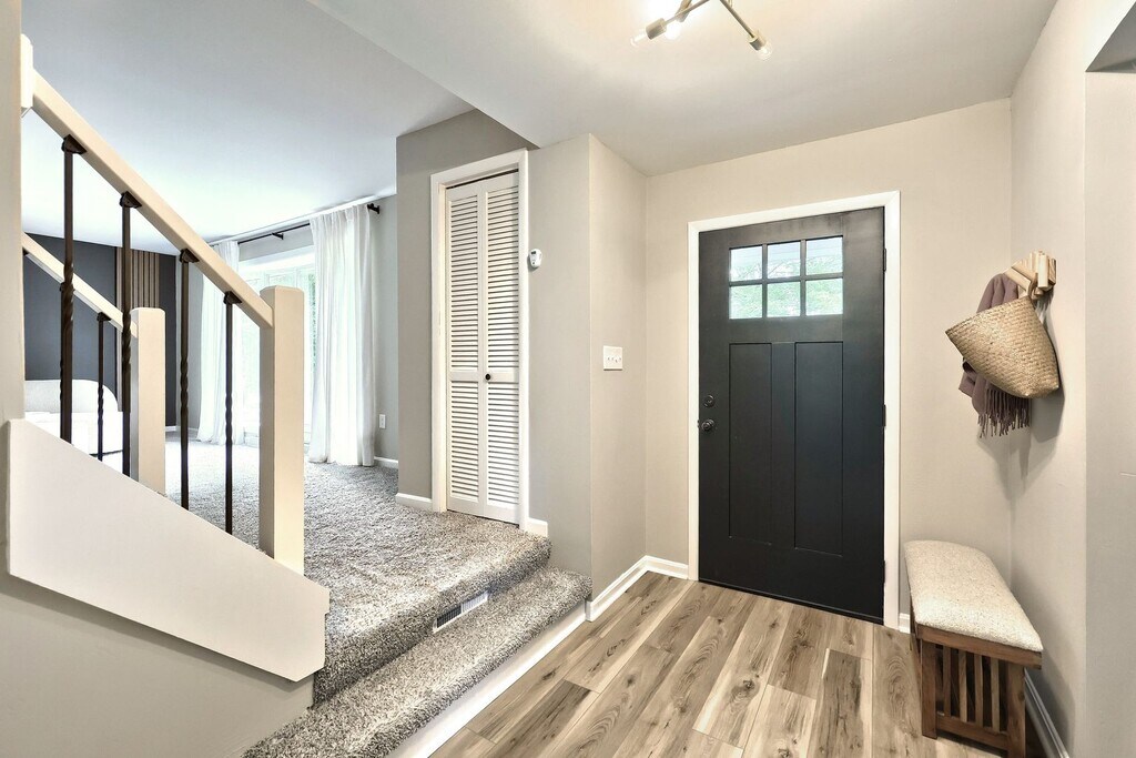 This beautiful home in the Outdoor Country Club has just undergone a total remodel, inside and out! The interior of the home has a mid-century modern feel when you walk in the door. Entering the home, you're welcomed to an open staircase with a modern railing and balusters. To the right of the front door is a family room with a dramatic accent wall adorned with acoustic wooden slats, fresh paint and new carpet. To the left, the formal dining room, with Hickory LVP flooring, Sputnik light fixtures and chair rail picture moulding. You can enter the kitchen via the dining room, or through the saloon doors off of the foyer. The kitchen, the heart of the home, has been updated with a beautiful white and gold granite waterfall countertop, light emerald vertical tile backsplash, brand new stainless steel appliances, and gold fixtures throughout. A kitchen/living combined space, the 2nd family room is right off the kitchen, and has a beautiful Iron Ore brick fireplace wall, and access to the rear patio. First floor laundry and a half bath with stylish accent wall paper is directly off of the kitchen and garage, also with access to the rear yard. Your upstairs living space has 3 generous sized bedrooms in addition to the primary bedroom with an on-suite full bath and 2 large walk-in closets. Both upstairs bathrooms feature the same stylish wall paper accent wall and gold fixtures as the powder room on the first floor. A partially finished basement provides extra play space, as well as the large unfinished portion which is ideal for storage. As if it can't get any better, this lot is perfection! We have a massive front yard with a beautiful mature tree, and the large flat backyard stares at a cornfield- private, scenic and lovely.