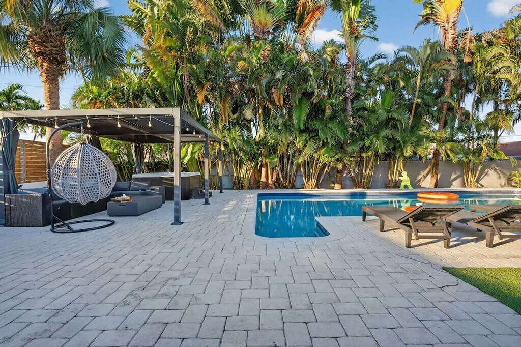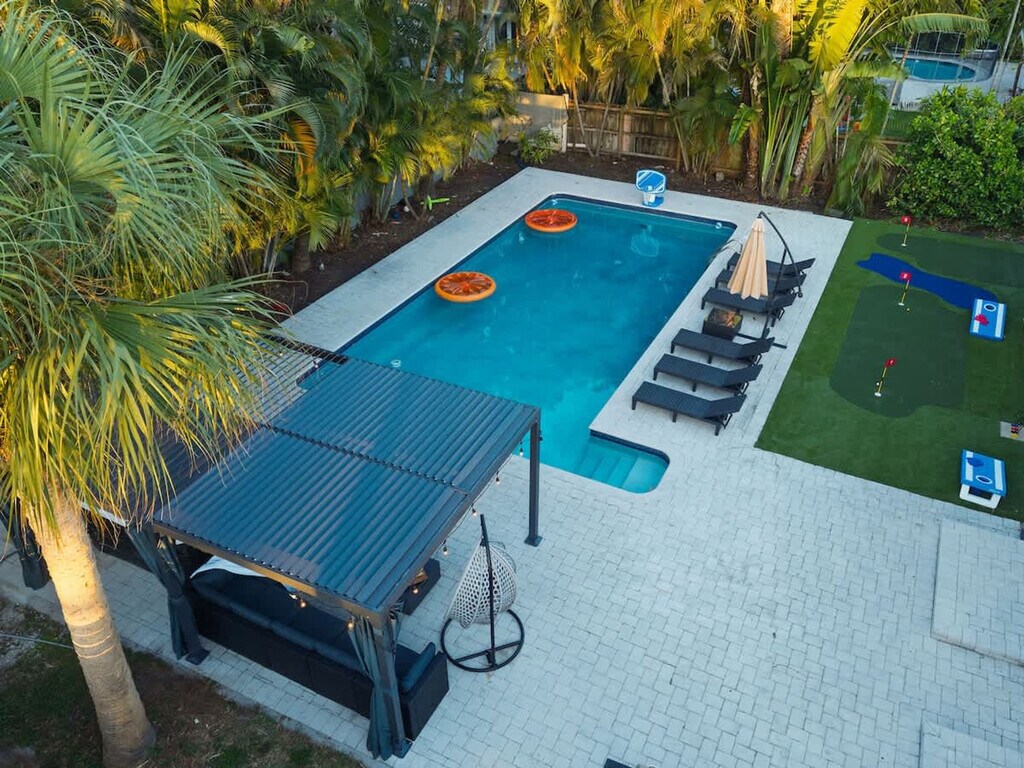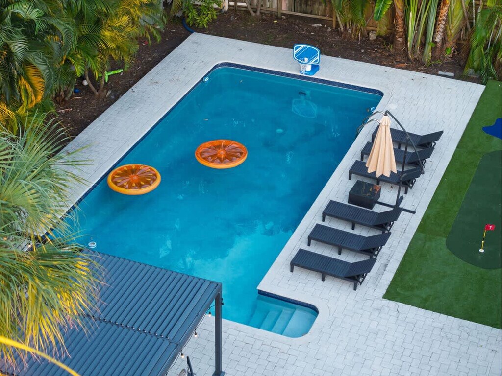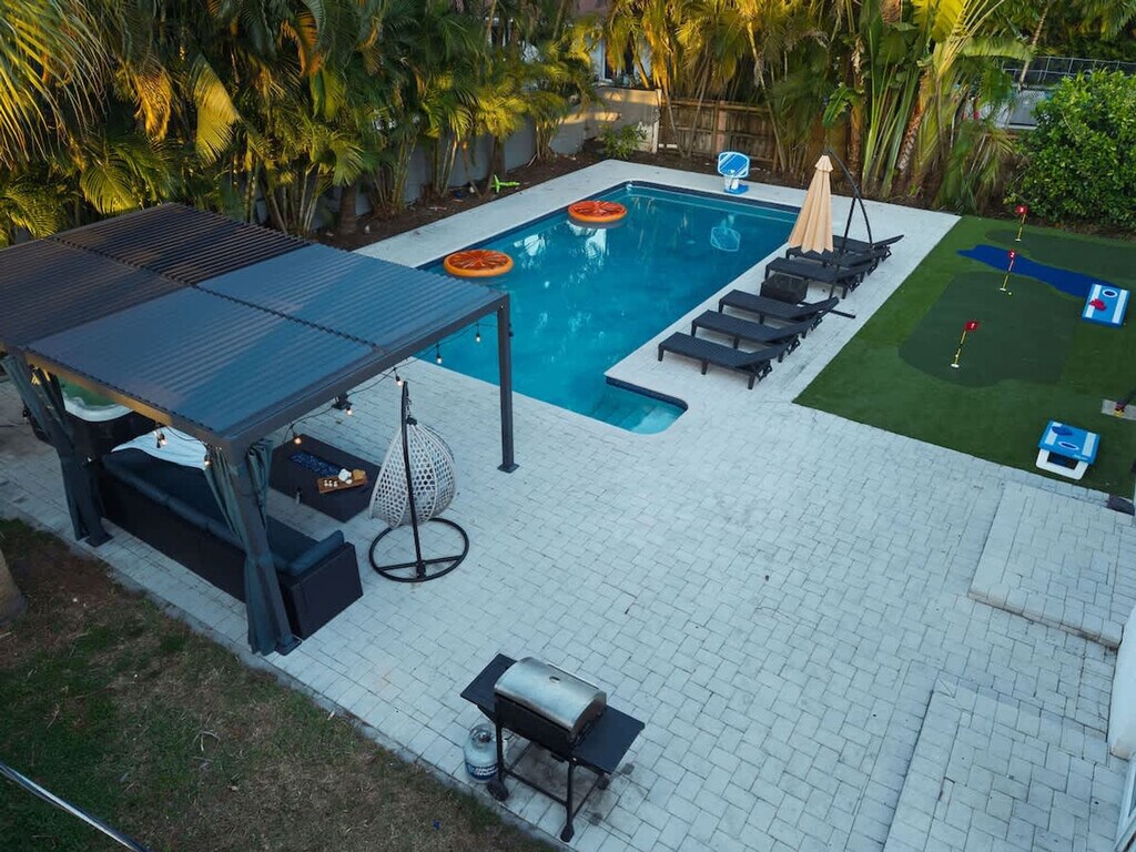 Feel at home in this 7-bedroom home offering an upscale stay close to the beach! This 3404ft²/316m² getaway has everything for a perfect Florida experience. This home features fresh linen and towels, a fire pit, mini golf, a heated pool (upon request), a hot tub jacuzzi, a pool table and games. All bedrooms are equipped with smart TVs. Air mattresses can be provided upon request. The pool can be heated for an additional $50 per day with at least 48 hours' notice prior to check-in. There are 2 parking spots available, and the driveway fits up to 3 cars. Centrally located in one of North Miami’s most convenient neighborhoods, this home is just minutes from Aventura Mall, Sunny Isles Beach, and major highways, all while enjoying a peaceful, family-friendly environment. Groceries, Aventura Mall, and Shuls are within 0-1 mile, the beach is 3 miles away, and Fort Lauderdale Airport (FLL) is 10 miles away. Driving is the easiest way to explore Miami and South Florida, and you’ll have free driveway parking at the home with quick access to I-95, US-1, and Biscayne Blvd. It's a short drive to Aventura, Sunny Isles, Miami Beach, Bal Harbour, and Hollywood. Publix & CVS, local parks, convenience stores, cafes and casual dining spots are within a few minutes. Aventura Brightline Station is 10 minutes away for easy travel to Miami, Boca Raton, and West Palm Beach. The home is professionally cleaned and sanitized following CDC guidelines, with inspections before each stay to ensure top-notch standards. [SI]