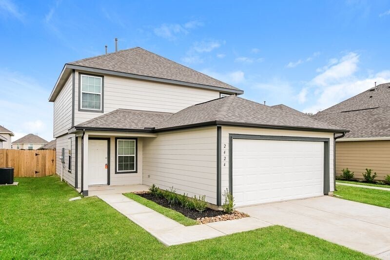The Darrel III Plan delivers space and flexibility with a thoughtful two-story design. The first-floor primary suite offers added privacy and includes a walk-in closet for everyday convenience. An open-concept layout connects the living room,kitchen,and breakfast area,creating a natural flow for daily life. Upstairs,you'll find three generously sized bedrooms and a versatile flex room—ideal for a home office,playroom,or media space. A fenced backyard,two-car garage,and sprinkler system complete the home. All homes are SimplyMaintained for a $100 monthly fee covering front and back yard lawn care and exterior pest control. Residents enjoy amenities such as a community pool and playground. Nearby attractions include the Conroe Aquatic Center and Lake Conroe,perfect for water fun,boating,and outdoor recreation. MLS# 34229459