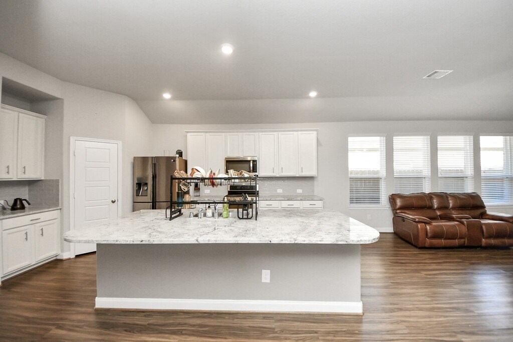 This beautifully maintained home is tucked inside the Katy Pointe community,zoned to acclaimed Katy ISD and just minutes from the Grand Parkway,I-10,and Katy Mills Mall. Step inside to a bright open-concept floor plan,where the living room seamlessly flows into the gourmet kitchen featuring granite countertops,a large center island,stainless steel appliances,and abundant cabinetry. A custom built-in workspace offers flexibility for working from home or study time,while a door leads to the private backyard with a covered patio and generous green space. The spacious primary suite includes a walk-in closet,while the ensuite bathroom boasts dual sinks,a soaking tub,and a walk-in shower. NO CARPET throughout the home,maintenance is a breeze and the modern feel is enhanced. Refrigerator,washer,and dryer are INCLUDED. Residents of Katy Pointe enjoy neighborhood amenities such as a resort-style pool,playground,and walking trails. Don't miss the chance to call this gem your own! MLS# 88806247