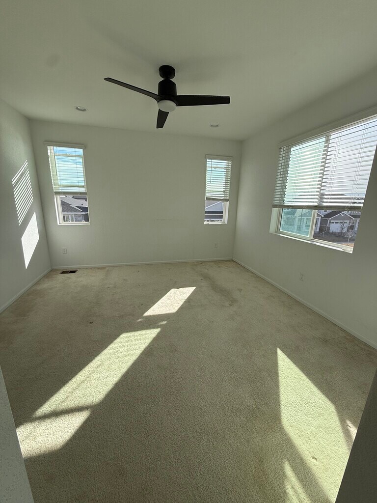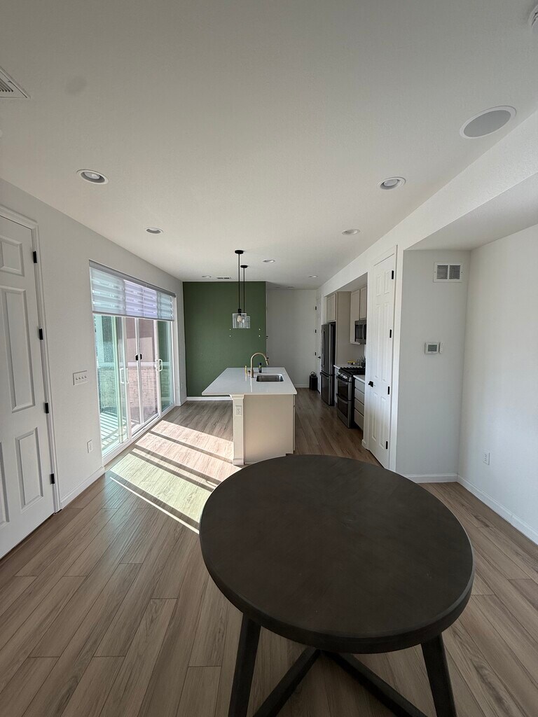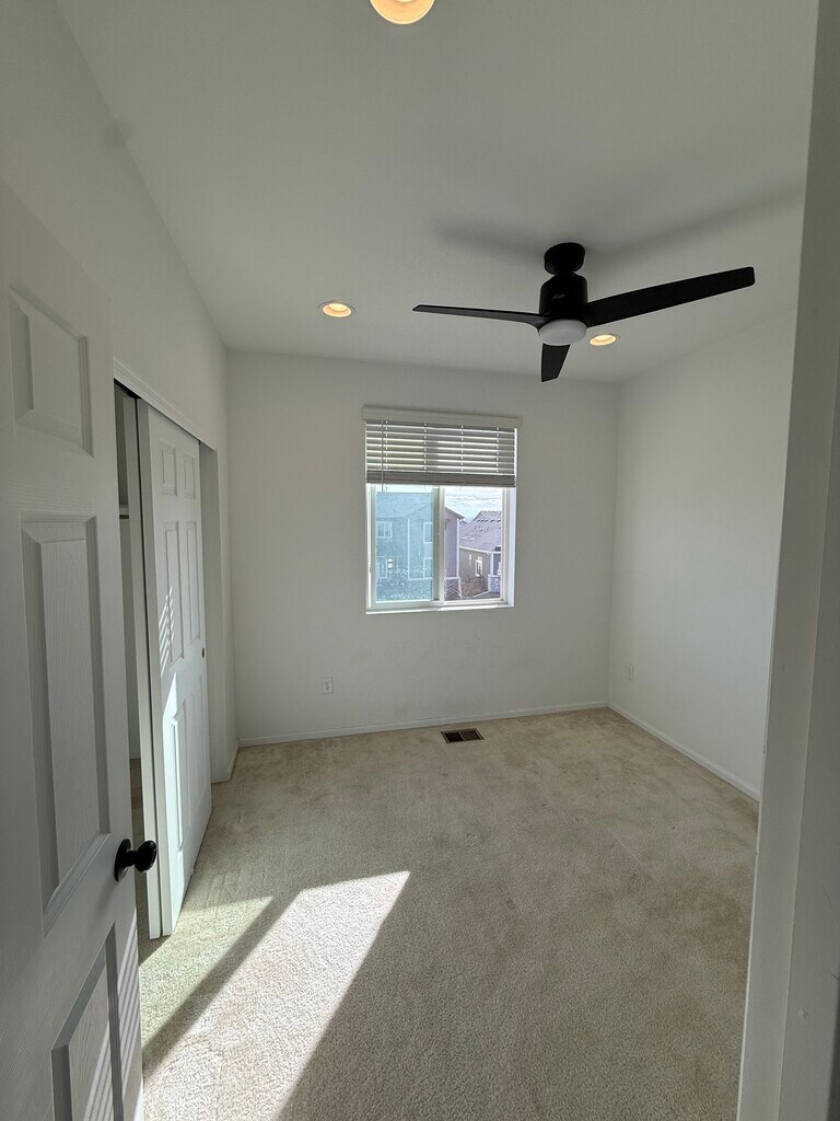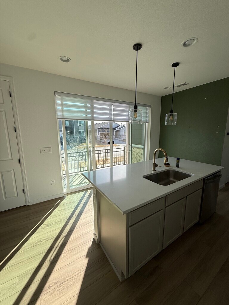 Beautiful Corner Townhome for Rent in the Aurora Highlands Rent: $2,695 per month (Half off the first month with a one year lease for qualified credit and background checks) This bright and spacious corner unit townhome offers 3 bedrooms, 2.5 bathrooms, and a two car garage with ample storage and parking. Hardwood floors run throughout the main level, with carpeted bedrooms and hallway, and tile flooring in all bathrooms. Located right next to a school and surrounded by walking trails, this home is perfect for families or anyone who enjoys an active outdoor lifestyle in a quiet, well maintained neighborhood. The home includes a full appliance package with refrigerator, stove, dishwasher, and an in unit washer and dryer. Central heating and air conditioning provide year round comfort. While utilities are not included, the home is equipped with solar panels, which significantly reduce electric bills, especially during the summer months. Large windows throughout the home bring in abundant natural light, creating an open and welcoming feel. The patio faces outward into the community and is perfect for evening hangouts, with space for a gas grill or a small gas fire pit. The patio overlooks neighborhood walking trails, green space, and community art installations, including the Umi statue, all just steps away. Situated in Aurora Highlands, this home offers convenient access to shopping and dining along Tower Road, Green Valley Ranch, and quick access to Denver International Airport, making it ideal for commuters. You are also just minutes from major retail, grocery stores, and everyday conveniences. Additional highlights: • Two car garage with additional storage • Corner unit with patio facing the community • Quiet, family friendly neighborhood • Plenty of guest parking nearby • Walking distance to trails, parks, and a nearby school The home is available for move in March 1st. Qualified applicants with approved credit and background check will receive half off the first month’s rent. Small dogs and cats are welcome with an additional pet deposit. *Photos shown reflect the move out condition. The home is currently being professionally cleaned, freshly painted, and receiving minor upgrades. If you would like to schedule a viewing or have questions, please reach out.