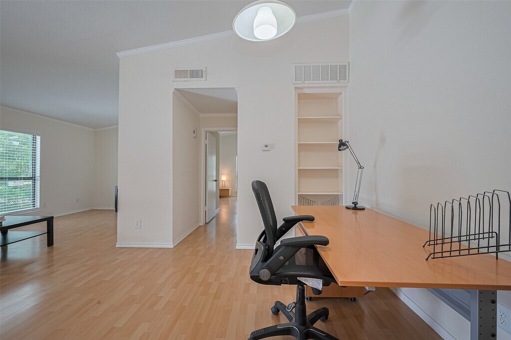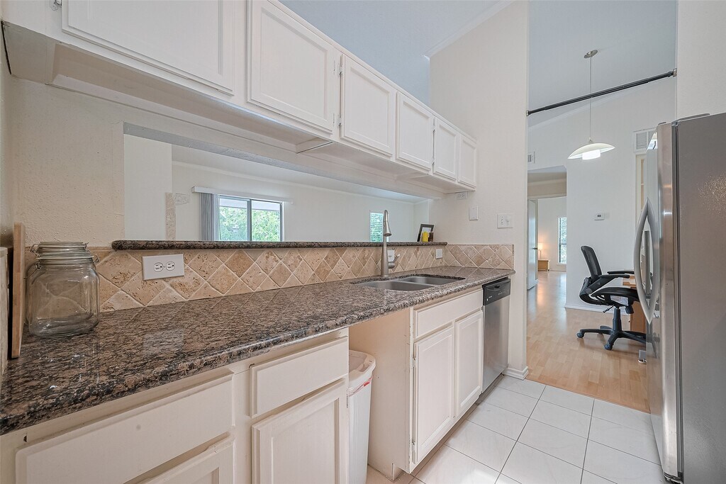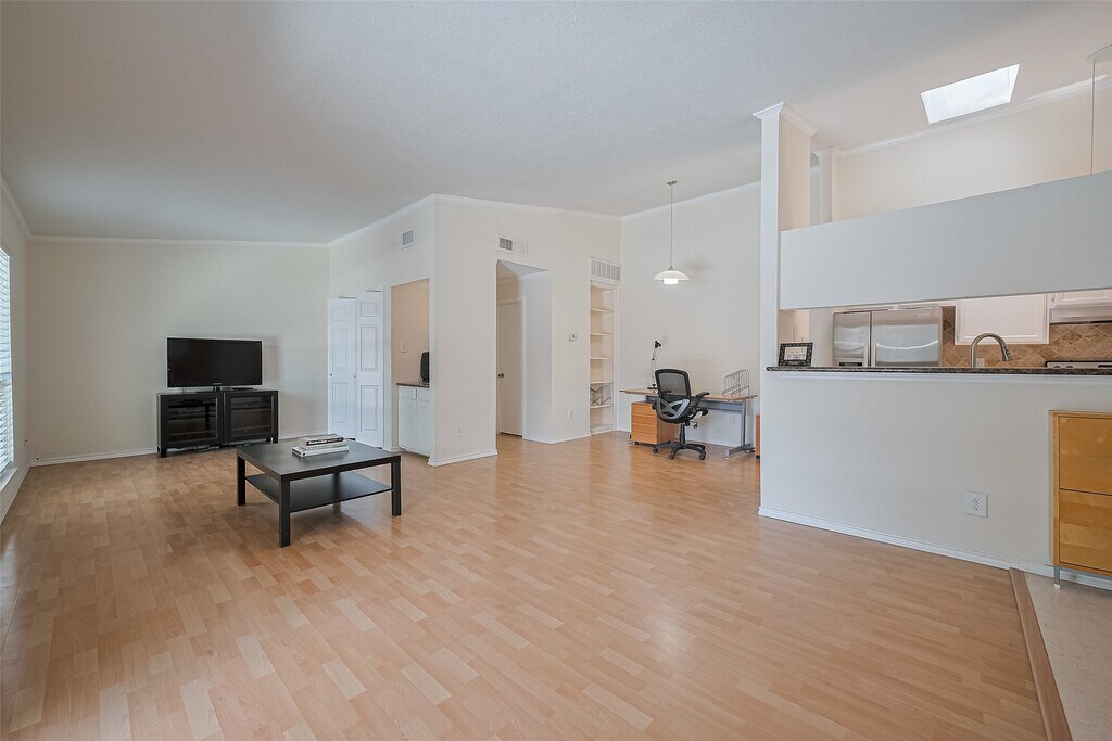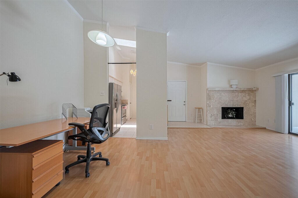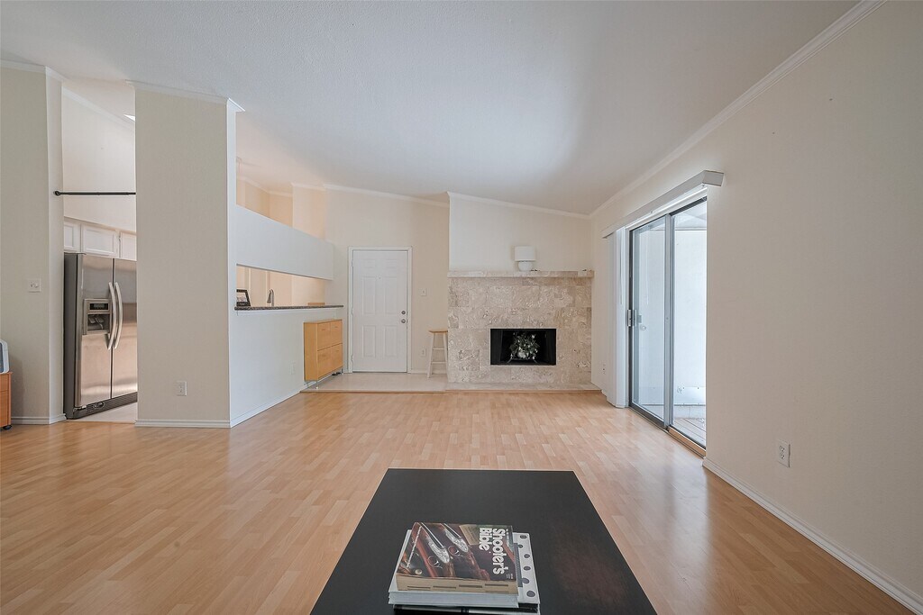 Beautiful light and bright 2nd floor unit in Galleria Area small complex. Large living area enough for a work space. High ceilings throughout. Nice modern wood burning fireplace. Very nice laminate flooring though out living dining hall and bedroom,granite counters with tile backsplash in kitchen with lots of natural light from ski light,Bathroom offers double sinks and tile flooring. has outside storage closet & balcony patio. Primary bedroom has double door walk-in closet. Swimming pool. Complex is gated and comes with one covered parking spot. Includes Refrigerator,Range and Stack Washer/Dryer. Conveniently located near H-E-B,the Galleria Mall,River Oaks District,Highland Village,and Memorial Park,with easy access to Hwy 59,610,I-10,and the Westpark Tollway. Call and make your appointment today! MLS# 8543962