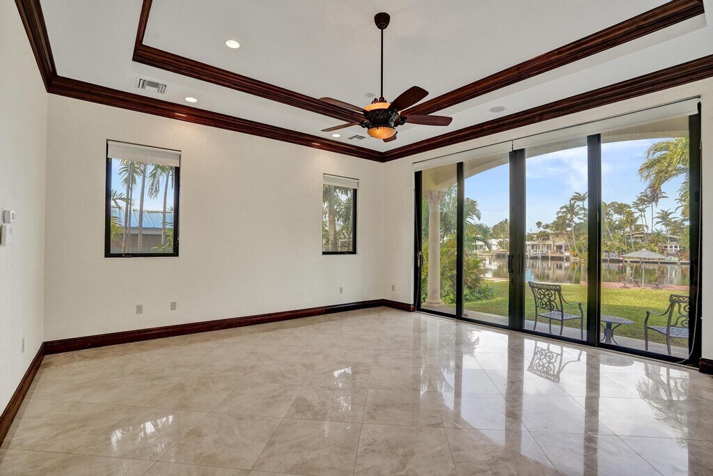 Situated on a 19k sq ft waterfront lot,this private oasis offers 45 feet of dockage and unobstructed views of the Middle River. Boasting 4795 sq ft,this home offers 3 beds/3.5 bath with 400 sq ft additional room that can be used for dining,office,gym or converted to 4th bedroom and 2CG. Floor-to-ceiling impact glass,volume ceilings and rich custom woodwork throughout. True South Florida living,the outdoor space features a custom lagoon-style pool and waterfall,expansive covered patio with an outdoor kitchen ideal for year-round entertaining. Launch your boat,kayak,or paddleboard directly from your backyard and enjoy peaceful waterfront living just moments from everything. Located in sought-after A+ Bayview School District and less than a mile to the beach,restaurants & shopping. MLS ID B26015824