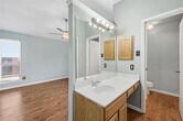Welcome to the Wonderful 2 Bed 2 Bath Home located in the desirable Bedford, TX! This home boasts an open layout, allowing for a seamless flow between rooms. The decorative lighting and vaulted ceilings add a touch of elegance, while the wood flooring brings warmth and charm. The kitchen is equipped with a large pantry and a refrigerator, ready for your culinary adventures. The living room features a wood-burning fireplace, perfect for cozy evenings. Both bedrooms are spacious, with the guest bedroom offering ample space for visitors. The mirrored closets add a stylish and practical touch. The home also includes washer and dryer hookups for your convenience. Step outside to a covered patio, perfect for outdoor dining or relaxation. The large backyard offers plenty of space for outdoor activities. This home is located within the Hurst-Euless-Bedford ISD, making it an excellent choice for those seeking quality education. Don't miss out on this gem in Bedford, TX! All tenants are required to have rentals insurance and register their pets with LEAP Property Management.