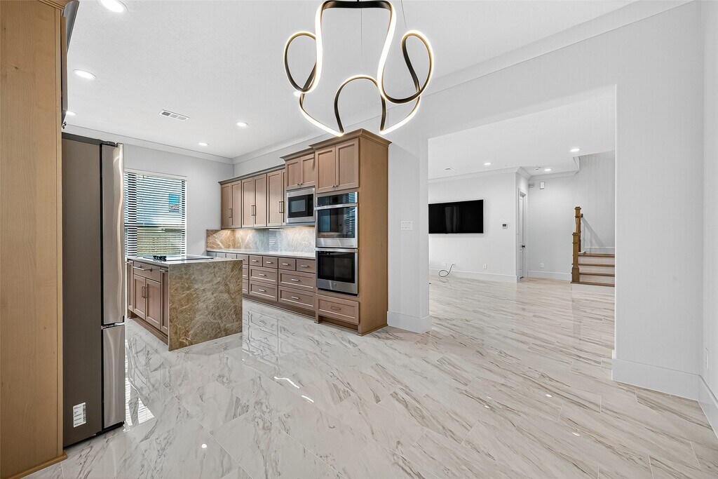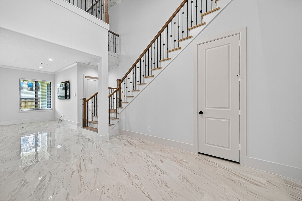This exquisite Mediterranean-style home boasts 4 bedrooms,including 2 primary suites—one on each floor—along with a spacious game room,home office,and formal dining area. Enjoy marble floors on the main level and hardwood upstairs,as well as a covered patio and green space. The stunning kitchen with island has double ovens,slide out drawers for pots and pans as well as a generously sized walk in pantry. Located in a gated community with security,pool,and tennis courts,this move-in-ready property features high ceilings and is conveniently situated near the Village School in Houston's Energy Corridor. MLS# 3099416