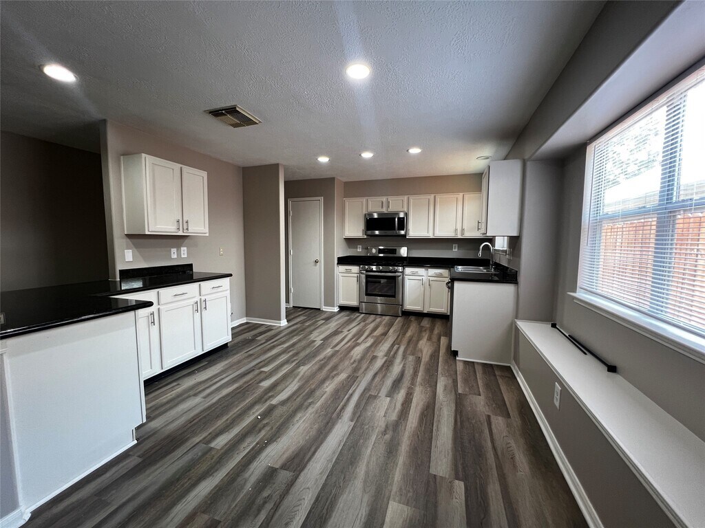 This adorable home is conveniently located in Spring,this home offers 3 bedrooms and 2 full bathrooms. The open-concept living room seamlessly connects to the dining area and kitchen,creating a spacious and functional layout. Just off the entry,a bright study with French doors and large windows provides the perfect space for a home office or reading nook. The kitchen features a gas cooktop,built-in microwave,and a cozy breakfast area,along with a versatile dining or flex room to suit your needs. The primary suite boasts a walk-in closet,soaking tub,and separate shower. Two additional bedrooms share a full bath and offer ample closet space. Step outside to a fully fenced backyard with a covered patio. Refrigerator will be installed. MLS# 81266402