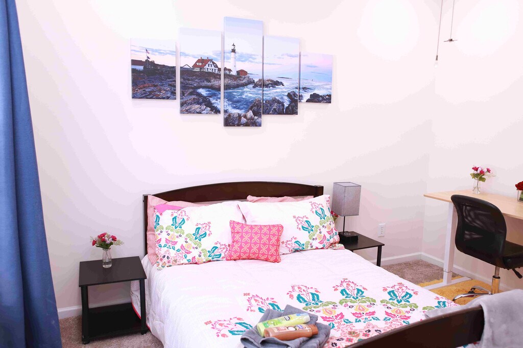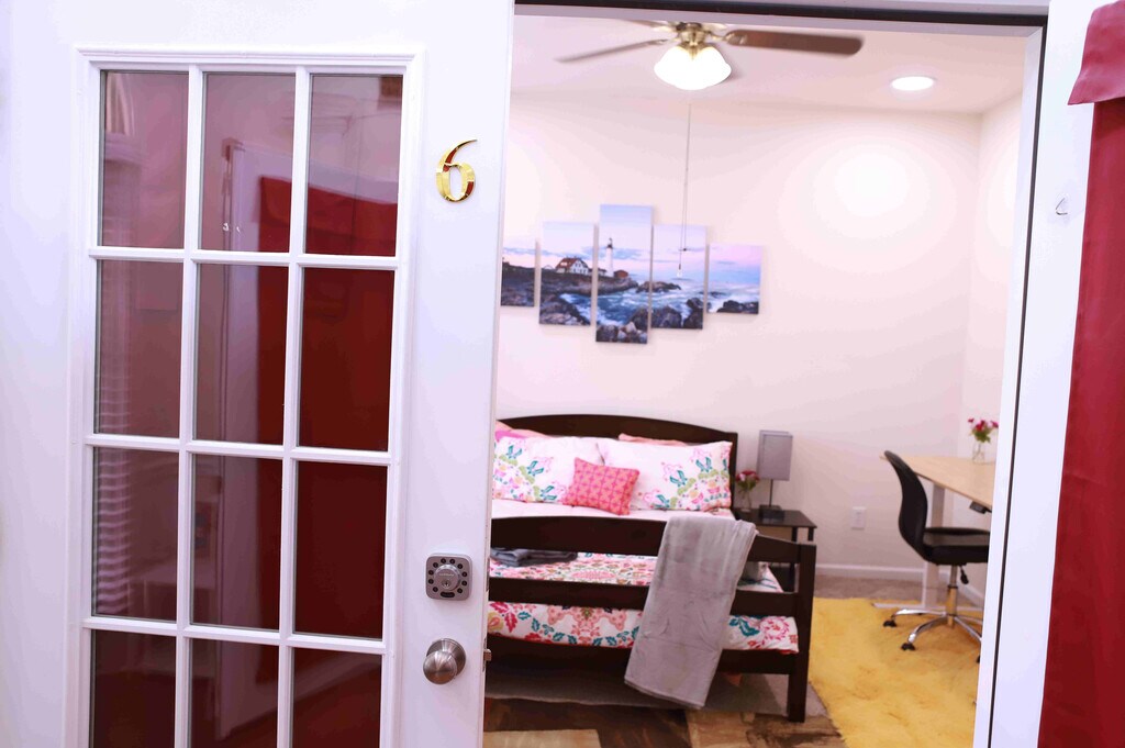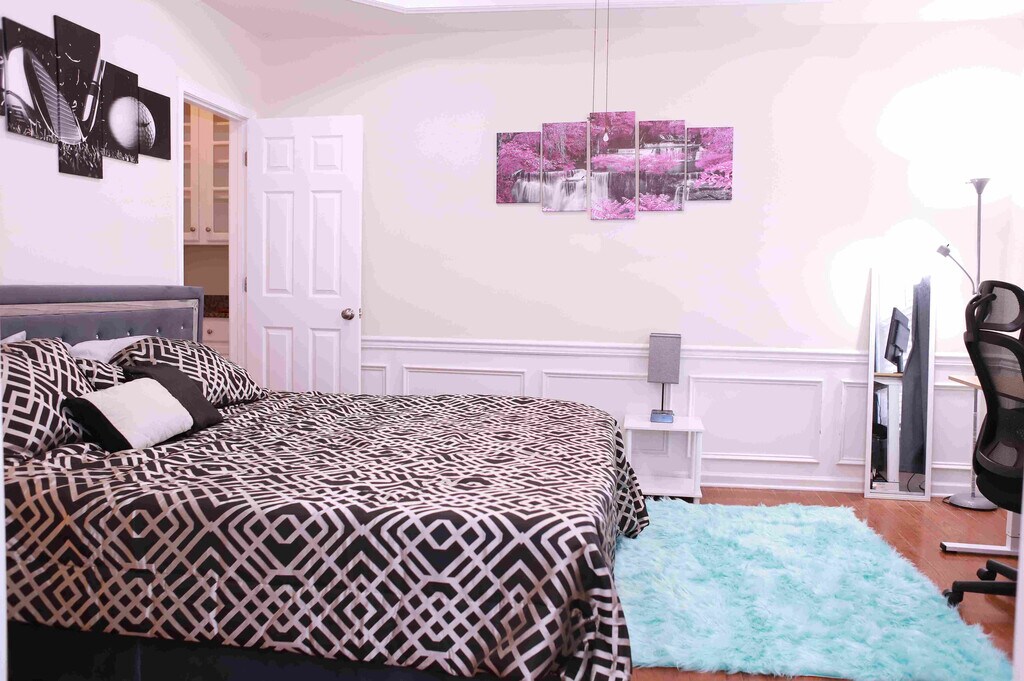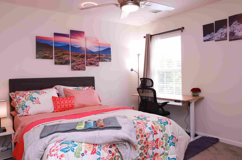 Room for rent: Welcome to our lovely spacious Smart beautiful home with lots of room to spread out & relax. Our house has a gorgeous backyard with lush landscaping, perfect for starlit relaxation. Classy yet comfortable furnishings allow you to enjoy your home in style & there are dedicated workspaces with smart standing desks throughout the house so you can get some work done too. Bedroom furnishing includes a comfortable bed, a Smart TV, side tables and lamps, a ceiling fan, a desk, and a chair. *Bedroom furnishing is not removable *Monthly professional cleaning is provided. Note: Do not visit this property without first contacting us to schedule a tour at the number below.
