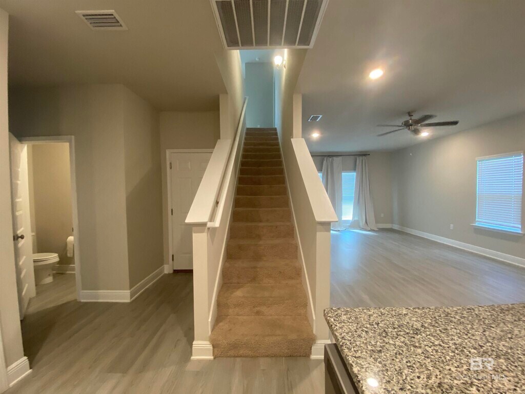 4 BED/3.5 BATH IN DAPHNE! Private space for EVERYONE! This two story home features living room,kitchen,dining room,and master bedroom on the first floor. Master bedroom will fit that king size bed plus more! Attached bathroom has double vanity,stand alone shower and walk in closet. Right as you walk upstairs,the room opens to a HUGE loft space! Great for a second living room,playroom,gym,or office space! The remaining 3 bedrooms,2 bathrooms,and laundry room are located upstairs as well. Don't forget to step out back onto the covered patio! Call/text today to schedule a showing!