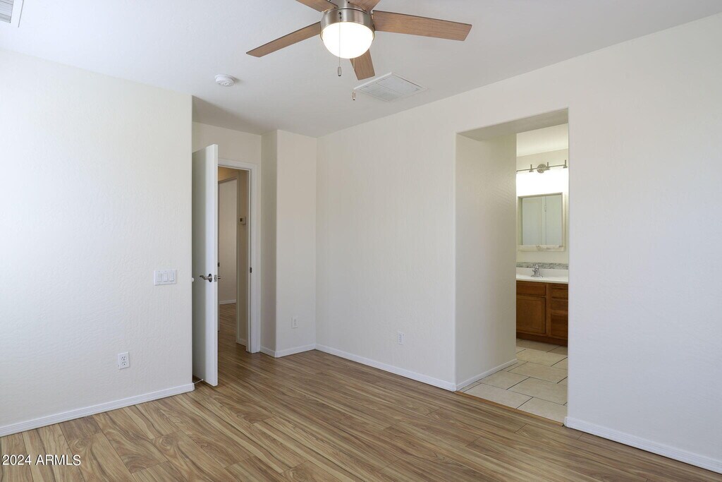Absolutely gorgeous & bright 3bed,2.5bath 2 story home in gated Bailey Commons community is available now! All hard floors- no carpet in home. Tile throughout downstairs with laminate on stairs and entire second floor. Enter to living room with vaulted ceilings and around to dining area / eat in kitchen with all stainless appliances included. Downstairs laundry and half bath. Upstairs to all bedrooms,w/ ceiling fans. Large,private patio area out back and 2 car garage! Quick walk to sparkling community pool! All of this in a great location,near bus transit and close to shopping,dining and entertainment. Easy access to I-10 and Loop 101!