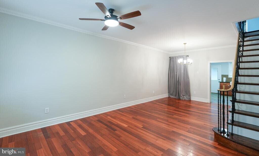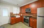 Welcome to this beautifully updated 3-bedroom, 1-bath townhome with finished basement in the desirable Girard Estate Area of Philadelphia. Just steps from Stephen Girard Park, this move-in ready home features gleaming hardwood floors with a mosaic inlay in the foyer and elegant crown molding throughout the main level. The bright living room offers natural light, a modern chandelier, and ceiling fan, while the fully renovated eat-in kitchen shines with cherry-style cabinets, black granite countertops, stainless steel appliances (gas range, refrigerator, microwave), a white farmhouse sink, brick backsplash, and tile flooring. Upstairs you’ll find three generously sized bedrooms with carpets, ample closets, ceiling fans, and AC, plus a stunning modern bath with frameless glass shower, subway tile, mosaic floor, black hardware, gray vanity, and built-in storage. The finished basement includes a large carpeted family/rec room, laundry area with washer/dryer, utility sink, and extra storage. Enjoy the private backyard with cozy concrete patio and wooden privacy fence. Additional perks include newer windows, reliable radiator heat (the best heat!), on-street parking, and the classic wrought-iron staircase. Located on a quiet tree-lined street near Passyunk Avenue dining/shopping, the sports complex, Center City via SEPTA, and I-76. No pets, no smoking. Contact us today to schedule a private showing!