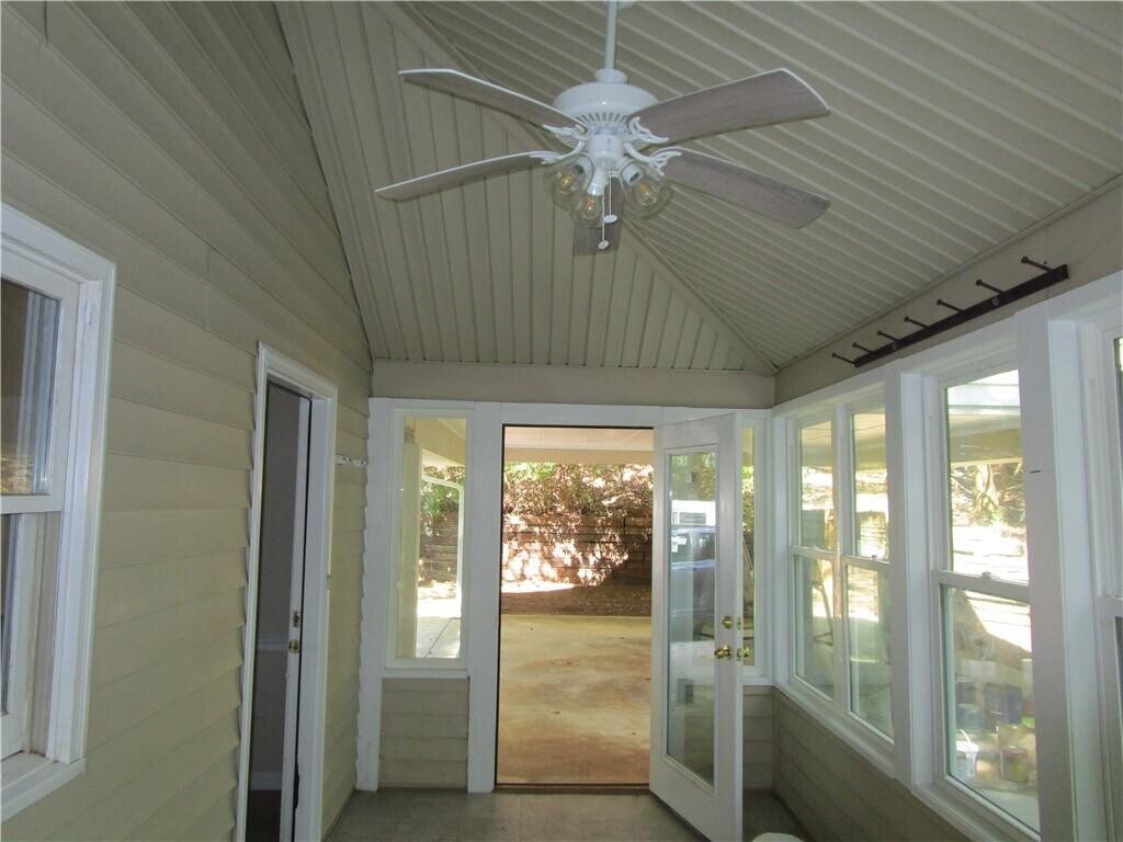 This 3 bedroom 2 bath home is bigger than it looks! Large cathedral living room with decoration only fireplace. Kitchen is light with plenty of windows and oak cabinets. There is a four season sunroom or sleeping porch. Master on main with double closets and a Jacuzzi tub and separate shower. House has several pocket doors for privacy. Laundry is on the main level. Downstairs has a split bedroom plan with two bedrooms at opposite ends and a Family room in between. LVP flooring….Extra,extra large bathroom. Downstairs has a finished storage area or make a great office. Workshop and utility room is downstairs too. Extra wide doors on main level. Multiple decks and sitting areas to enjoy the outside. Double carport plus plenty of parking. Very little yard to mow. All natural woods with seasonal lake views. Great location to hop on 985 or head into the City of Gainesville. Just off 129 near the State Patrol office.