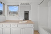 This spacious townhouse boasts high ceilings, hardwood maple floors in a light-filled living room, dining room and kitchen- a gas fireplace- a private deck- and an open kitchen with refrigerator, range, disposal, built-in microwave, and dishwasher. Upstairs, there are two bedrooms, one large bathroom, a washer and dryer, and ample closet space. The master bedroom includes two large closets, one of which is a walk-in closet. Downstairs, there is a den/office, a second full bathroom, and direct access to the garage. The stairs, bedrooms and den all feature wall-to-wall Berber carpeting. The townhouses also feature central heat/air conditioning and an alarm system. Each Alder Townhouse includes private parking space for two cars, one in a remote-controlled garage and the other in a carport. For more on this and other Franklin West, Inc. properties, please see our website ().