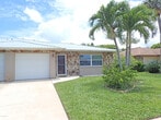 Stunning remodel still looks great with lovely neutral colors and tasteful custom touches. Nicely painted inside,tile throughout except for carpet in master bedroom. One block from Paradise Beach means short walk or bike ride to public access to the ocean! Great floor plan! Wonderful kitchen with beautiful cabinets is open to family room (or could be formal dining room). Separate large room in front is great for TV room or formal living area. Screened patio to watch the sunsets. Fenced yard. Laundry hookup in the 1-car garage. Owner will consider a pet,but no ''danger breeds''. The triple pane,Low-E coated,hurricane rated safety windows provide lower energy bills and peace of mind. Lawn care included! (Storage shed out back is reserved for Owner's use only,tenants will not have access to or use of it.) MLS # 1072670