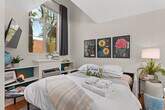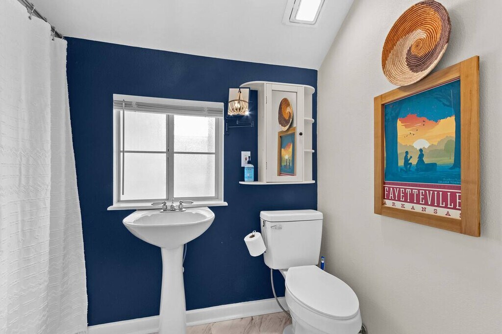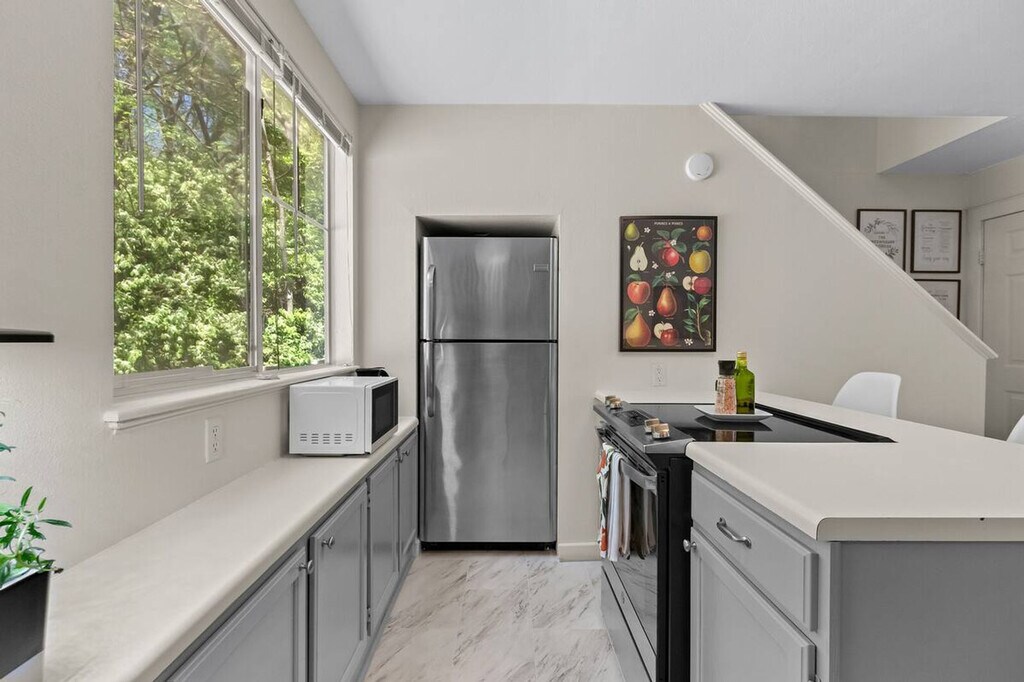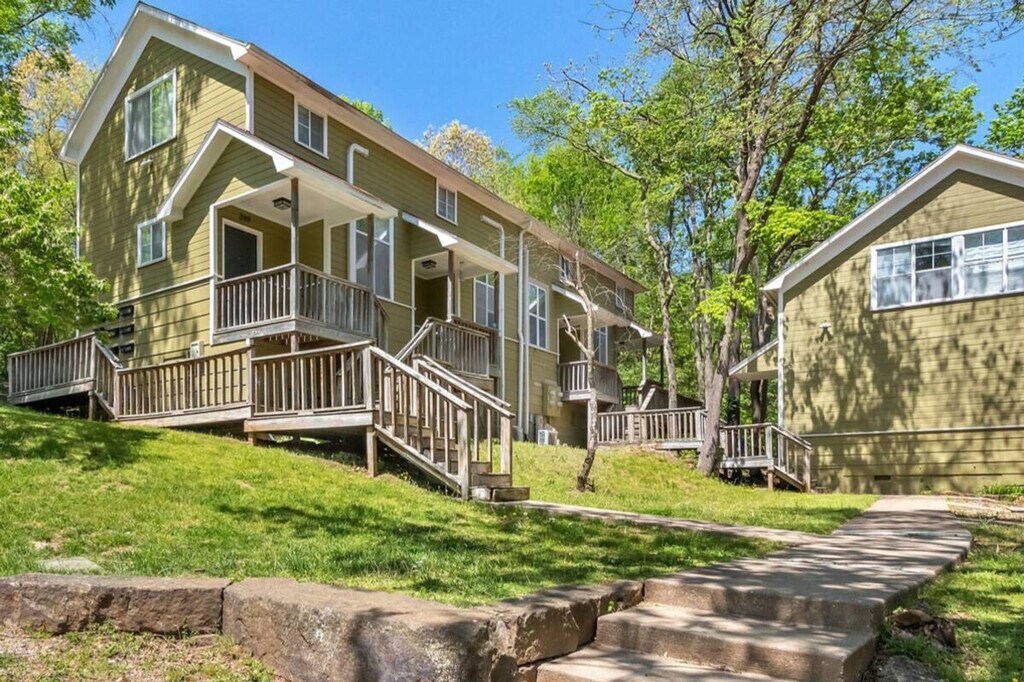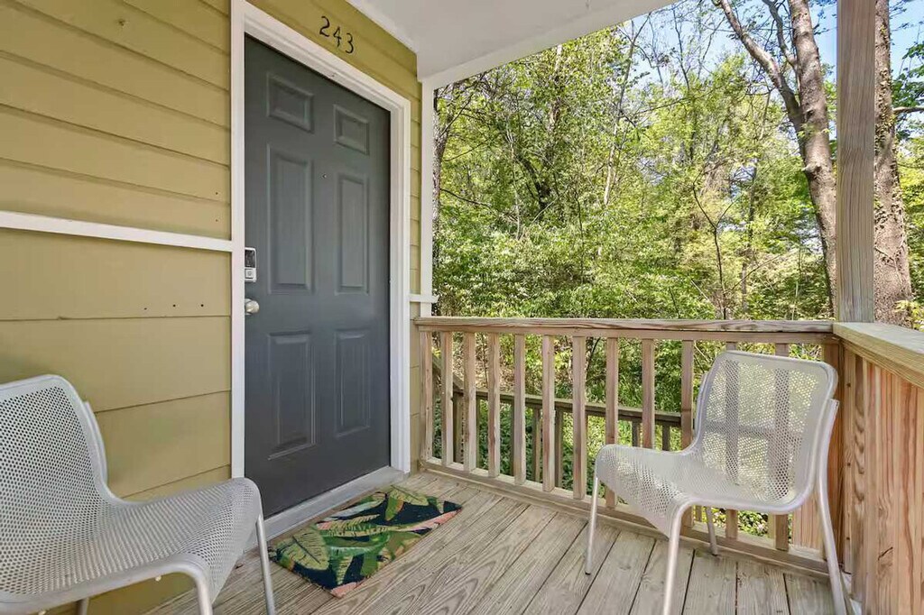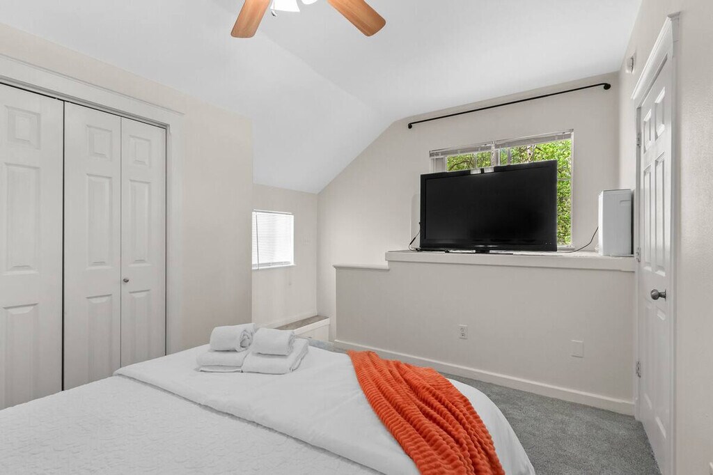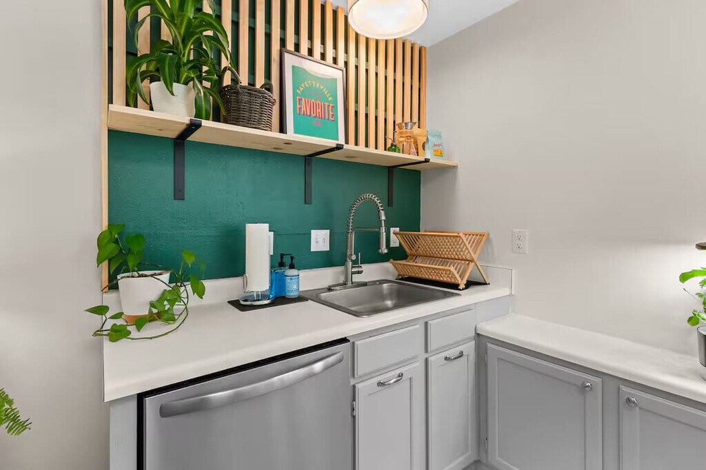 Feel at home in this 1-bedroom, 1-bathroom townhome at Greenhouse on Gregg, steps away from Downtown Fayetteville and the University of Arkansas campus. This home offers a cozy living room and a fully stocked kitchen. The open-concept living room and dining space create the perfect space for memorable gatherings. The living room features a large Smart TV with streaming channels and plush seating. The bedroom is upstairs and has a queen-size bed, closet, Smart TV, and attached bathroom. One designated parking spot is available. Located near the downtown square and the U of A, this home offers easy access to public transit, bike trails, and ride-sharing services. It's also conveniently located 0.5 miles from restaurants like Wood Stone Craft Pizza, Arsaga's Mill District, Mamaka Bowls, and Prairie St. Bar and Grill, as well as 0.5 miles from Downtown Fayetteville and the University of Arkansas. Direct access to Razorback Greenway trailhead! Check-in is any time after 3:00 PM. Parties or guest actions that result in disturbances, property damage, extensive extra cleaning, or smoking indoors will incur a fine of $1,000. Pets discovered at the property will incur a fine of $400. Unauthorized checkout delays will incur a fine of $100 per hour. If you smoke in the home, you will be fined $1,000 plus the cost of any smoke remediation necessary. Quiet hours are observed from 10:00 PM to 10:00 AM. There is no washer/dryer available. This property is not pet-friendly. Registration Number: STR-0181-2023 [SI]