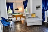 INSIDE SAINT PATRICK PALACE Saint Patrick Palace exudes the grandeur of a turn-of-the-century estate, seamlessly blended with today's most desirable conveniences. Designed with both elegance and functionality in mind, the property is equipped with integrated smart home technology, including smart lighting, audio, video, and a comprehensive security system, as well as Samsung Smart TVs and premium high-speed Wi-Fi throughout. Step into the stunning 24-foot foyer, and you'll immediately sense the endless possibilities of your stay. Ten-foot ceilings, rich hardwood floors, and two fireplaces enhance the sense of timeless sophistication that defines this estate. The chef's kitchen is a true centerpiece, featuring marble countertops, a six-burner gas stove, double ovens, and all the culinary tools needed to prepare and enjoy gourmet meals. Dine in style in the formal dining room, relax in two spacious living areas with plush sectional sofas and 75" Smart TVs, or retreat to the expansive master suite complete with a private living room and luxurious bath. Whether you're hosting a gathering or enjoying a quiet night in, the entertainment room offers fun for all ages, with a billiards table, game selection, and more. For work or study, the dedicated office with Ethernet connectivity provides a quiet, productive space. A large air-conditioned three-car garage and ample driveway offer convenient on-site parking for you and your guests. The estate is thoughtfully designed to provide both privacy and flexibility, with the Kong Vacation Homes property management team on hand to ensure your stay is exceptional from arrival to departure DETAILS BY ROOM: The Living Areas - The estate features two beautifully appointed living spaces, each furnished with plush sectional sofas and 75” Samsung Smart TVs. These inviting spaces seamlessly blend classic design elements with modern convenience, making them the perfect places to unwind, entertain, or simply spend quality time with loved ones. Formal Dining Room – With a majestic chandelier and a table that seats up to twelve people, this elegant dining room is the perfect spot to enjoy a gourmet meal. The Kitchen – The heart of the estate, this chef's kitchen is a bright and welcoming space with marble countertops and timeless design touches. Fully equipped with pots, pans, dishes, silverware, and glasses, you will find everything you need to prepare meals, including a six-burner gas stove and double ovens. Keurig coffee machine and griddle are just a few additional pieces that make this house feel like home. The Entertainment Room - Furnished with a billiards table, card tables, a 75” Samsung Smart TV, bar, a selection of games, a gaming console, and more card tables, fun awaits you here! The Rooms - The main residence at Saint Patrick Palace features four spacious bedrooms, thoughtfully arranged to accommodate families and groups with comfort and style. You'll find a total of three king beds and two queen beds, each dressed in crisp white linens, light comforters, and equipped with a smart alarm clock for added convenience. The grand master suite offers a private living room and a luxurious master bathroom, providing a peaceful retreat within the estate. Two of the upstairs bedrooms share a guest bathroom, perfect for family or close friends. The remaining bedrooms each feature their own private en suite bathrooms for added privacy. A full guest bathroom, located downstairs near the living room, offers additional convenience for shared spaces. Outdoor - A large, heated pool with a paved outdoor patio, complemented by plenty of seating, good lighting, a charcoal grill, and warm weather, transforms the outdoor living space into the perfect place to gather and unwind. Private balconies and 2,000 square feet of a wrap-around veranda offer unlimited opportunities to relax in the fresh air. Laundry Room – The estate comes equipped with two washers/dryers, an iron, and an ironing board for guests' use. Please discuss with your host if additional cleaning products are needed during your stay. Guest Cottage – A retreat within a retreat, this separate home features one upstairs bedroom with a king bed, a downstairs living space with a kitchenette, and two bathrooms. It also has a private balcony and porch, where you can enjoy the South Florida sunsets. OUR COMMITMENT TO CLEAN: At Saint Patrick Palace, your health and peace of mind are our top priorities. We are committed to maintaining the highest standards of cleanliness and sanitation. Here's what you can expect: * Enhanced cleaning protocols are in place before and after every stay, with special attention to high-touch surfaces and frequently used areas. * Each room is thoroughly cleaned using detailed checklists, and our team wears protective equipment during all cleaning procedures. * We follow CDC-recommended guidelines and use EPA-registered disinfectants to ensure your safety. * All linens, towels, dishware, and service items are washed and sanitized between every booking. * We provide hand soap and surface sanitizing supplies for your use during your stay, allowing you to maintain your own comfort level of cleanliness. Your safety and satisfaction are our priority, and we strive to offer a clean, comfortable, and worry-free environment from the moment you arrive. Welcome to Saint Patrick Palace, your own private resort in the quaint town of Davie, Florida, where old-world charm meets modern amenities! Set on five acres of beautifully landscaped and securely gated grounds, Saint Patrick Palace beckons with an air of exclusivity coveted by celebrities and executives alike. Tailored for multi-generational families, retreats, and unforgettable gatherings, the estate features a fully furnished main residence, a charming guest cottage, a heated saltwater pool with a travertine-tiled sundeck, and so much more. Enjoy breathtaking views of the lush grounds—complete with a serene pond and fountain—from th