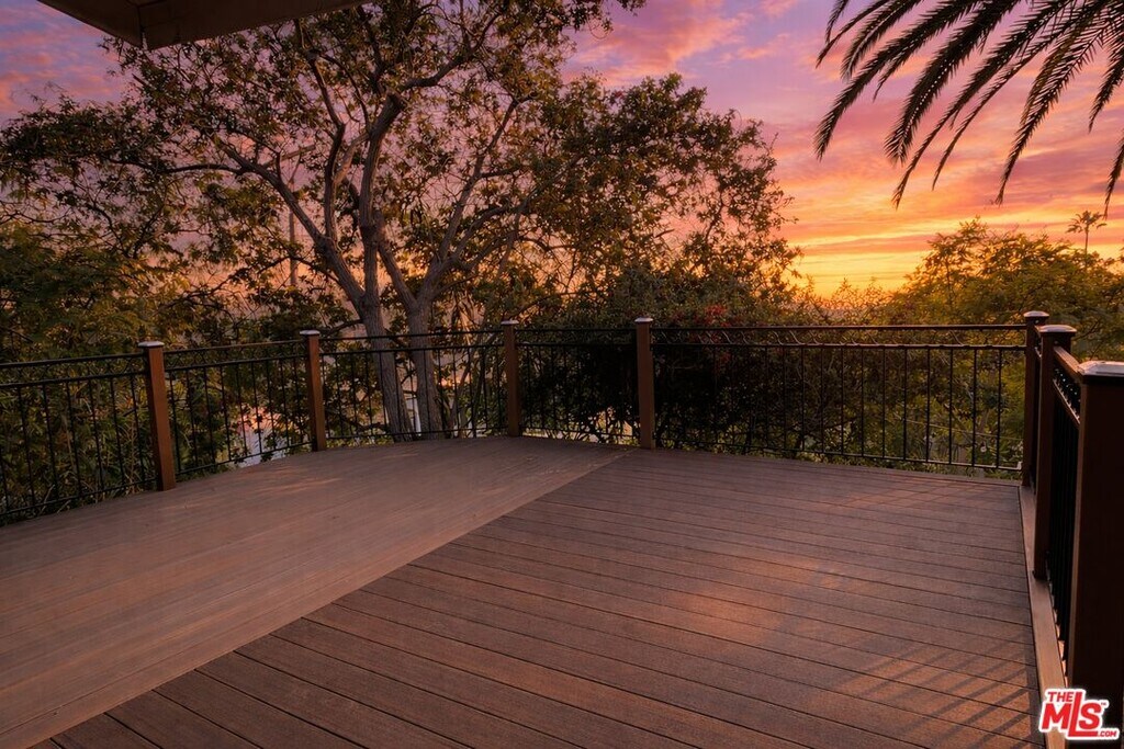Freshly vacated and move-in ready with a brand new deck! This enchanting Hollywood Hills bungalow-style treehouse features sweeping views of the city, surrounding hills, and iconic Hollywood landmarks. Ascend the newly built deck and enter through the original Dutch door into a light-filled interior showcasing high ceilings, a charming accent fireplace, on-site laundry, and expansive windows with views that transition beautifully from peaceful mornings to glowing sunsets and sparkling night skies. The flexible layout offers 3 bedrooms and 2 bathrooms, with the third easily serving as a den, office, or yoga room with direct nature and city views and adjustable blinds for comfort throughout the day. French doors throughout open to multiple patios and entrances, creating seamless indoor-outdoor living, each patio ideal for entertaining, yoga, playground for kids, or weekend barbecues. The home has a 2 car garage plus additional space, offering a rare total of 3 dedicated parking spots. Thoughtfully designed and immersed in nature, this home delivers an authentic and elevated Hollywood Hills lifestyle. MLS# 25585793