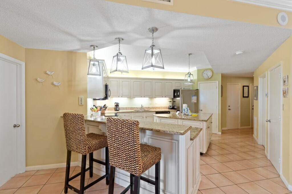 Experience the ultimate beachfront escape at this exquisite three-bedroom condo located in the stunning Orange Beach, Alabama. Offering sweeping views of the Gulf, this condo invites you to step out onto the private balcony and savor the breathtaking beach vistas. The open-plan living area is designed for comfort, featuring a spacious sitting area and a fully equipped kitchen with modern appliances, including a blender and wine opener for your culinary adventures. This condo boasts exclusive amenities such as a shared outdoor pool, a fitness room, and tennis courts, providing entertainment and leisure without leaving the property. The comfortable living area includes a flat-screen TV, and the fully equipped kitchen is perfect for preparing meals. Direct beach access and a shared barbecue area enhance your stay, while the serene and peaceful atmosphere ensures relaxation. Parking is paid on the reservation with a fee of $125 for two parking passes and wristbands, which must be worn on site. One covered parking spot is available in the north garage, closest to the road, and a second vehicle may be parked in any unmarked open parking spot. There is a two-car limit per unit with no exceptions. With its prime location, this condo is your gateway to a memorable beachfront retreat. Local attractions include Gulf State Park, Gulf State Park Pier, Bon Secour National Wildlife Refuge, and Alabama Point East. Enjoy water activities like dolphin and whale watching cruises, fishing charters, parasailing, jet skiing, kayaking, and paddleboarding. Entertainment options include The Wharf, Waterville USA, Alabama Gulf Coast Zoo, and Arena The Next Level. Dining and shopping are available at Orange Beach Sportsplex, Tanger Outlets Foley, and local seafood restaurants. This family-friendly condo prohibits pets and smoking, ensuring a serene environment for all guests. Any violation of the smoking policy will incur a $250 fine plus cleaning costs necessary to remove smoke odors. Quiet hours are observed from 10 pm to 8 am, with violators charged a $200 fine. The condominium association has a strict no-pets policy, applying to emotional support animals, with only ADA-compliant service dogs allowed. No parties or events are permitted, with violators charged a $500 fine. Children under 12 must be accompanied by an adult in all pool areas. For March 1st to May 1st, the minimum age requirement for check-in is 25 years old. Pool hours are from 9:00 AM to 9:00 PM for the main pools and 8:00 AM to 9:00 PM for the lap pool. A laptop computer is not included. [SI]