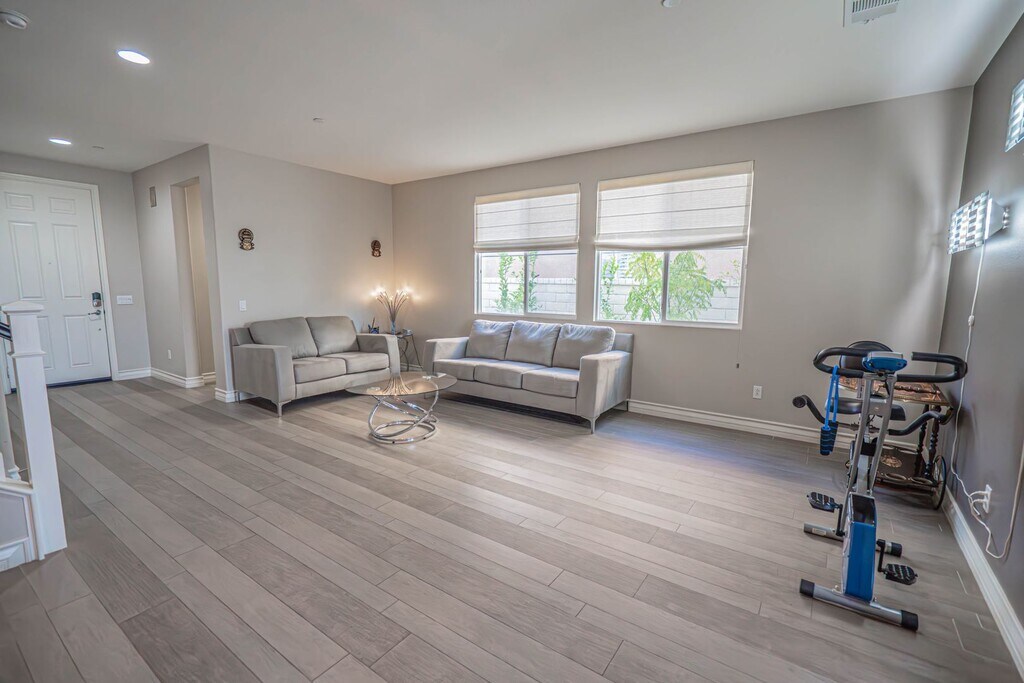 Welcome to this spacious Santa Clarita Valley rental located just off Vista Del Rio and La Montura Drive in the highly desirable city of Valencia. Offering 5 bedrooms, 3 bathrooms, and a generous 2,926 sq. ft. of living space, this home features a bright and inviting open floor plan. Design highlights include soaring vaulted ceilings, sleek recessed lighting, and a cozy fireplace, all complemented by stylish vinyl plank flooring on the main level and comfortable neutral carpet upstairs. For your year-round comfort, the home is equipped with central air and heat as well as ceiling fans throughout. The heart of the home is the beautifully remodeled kitchen, which opens seamlessly into the family room so you never miss a moment with guests. It is perfectly equipped for daily living and entertaining, boasting elegant granite countertops. The highly functional layout includes a full bedroom and bathroom conveniently located downstairs, making it ideal for guests, extended family, or a private home office. Upstairs, the bedrooms offer a wonderful retreat and are highlighted by custom California-style walk-in closets for optimal organization. For your everyday convenience, the property features a dedicated in-unit laundry room complete with a utility sink, soft water plumbing available for use, and a secure 2-car attached garage. Step outside to discover a fantastic outdoor BBQ and entertainer's area, perfect for hosting friends or enjoying the beautiful California weather. Residents also enjoy access to premium community amenities, including a sparkling pool and spa, a clubhouse, a playground area, and a basketball court. Pets will be considered for this residence. This fantastic Valencia home will be available for move-in on June 19th. - IMPORTANT NOTES: Visit the page on our website "Renting a Property" for a detailed explanation of our application and approval process. Please review our Pet Policy for associated fees and requirements. More details here: At California Leasing, we strive to provide an experience that is cost-effective and convenient. That’s why we provide a Resident Benefits Package (RBP) to address common headaches for our residents. Our program handles insurance, air filter changes, utility set up, credit reporting, rewards and more at a rate of $50.95/month, added to every property as a required program. More details upon application. Most California Leasing homes come with high speed internet up to 1 Gig at a special group rate of $70.00, with premium support and setup powered by Second Nature to get you connected fast at move-in. Check your lease to see if your home is included in the program.