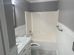 Location,Location,Location! This charming brick-front home offers the perfect blend of comfort and convenience—just minutes from shopping,dining,and entertainment. Step inside to find pristine hardwood floors that flow throughout the main level. The open-concept family room is filled with natural light and offers serene views of the beautifully landscaped backyard. A formal living and dining room with elegant chair rail detailing creates the ideal space for hosting gatherings. The spacious kitchen features stainless-steel appliances,a stylish tile backsplash,and generous counter and cabinet space—perfect for everyday living or entertaining. Upstairs,the primary suite boasts a vaulted ceiling and a luxurious en-suite bath complete with dual sinks,a soaking tub,and a separate shower. Three additional bedrooms and a full hall bath provide plenty of room for family or guests. The convenient upstairs laundry room adds an extra touch of practicality. Enjoy the outdoors in the large,fenced backyard with mature trees,lush greenery,and a patio ideal for relaxing or entertaining. Community amenities include a clubhouse,swimming pool,and playground,adding even more value to this fantastic rental home!