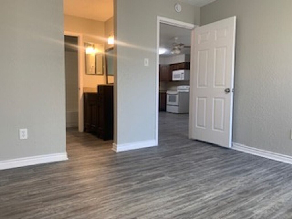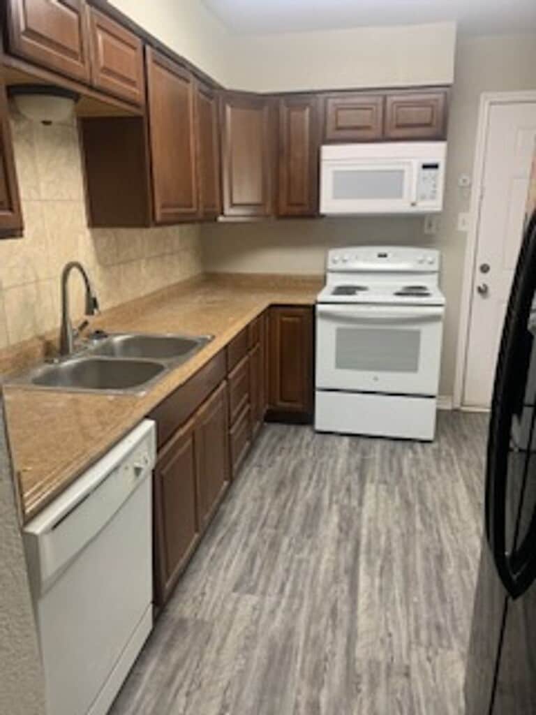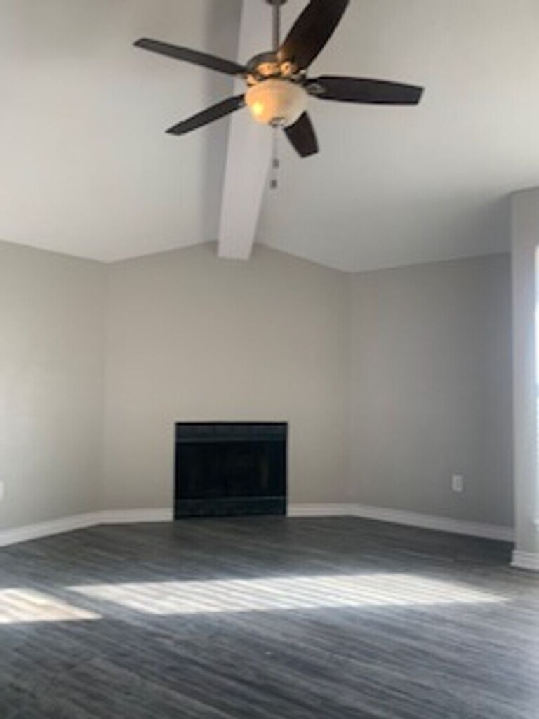 This 3 bedroom property feels very spacious with large living room with fireplace and vaulted ceiling which opens to the dining room and kitchen. The bedrooms are split with the primary suite tucked away with big closet and bathroom. The other bathroom has shower and full size washer dryer connections. There is a cute fenced in backyard perfect for a small dog.