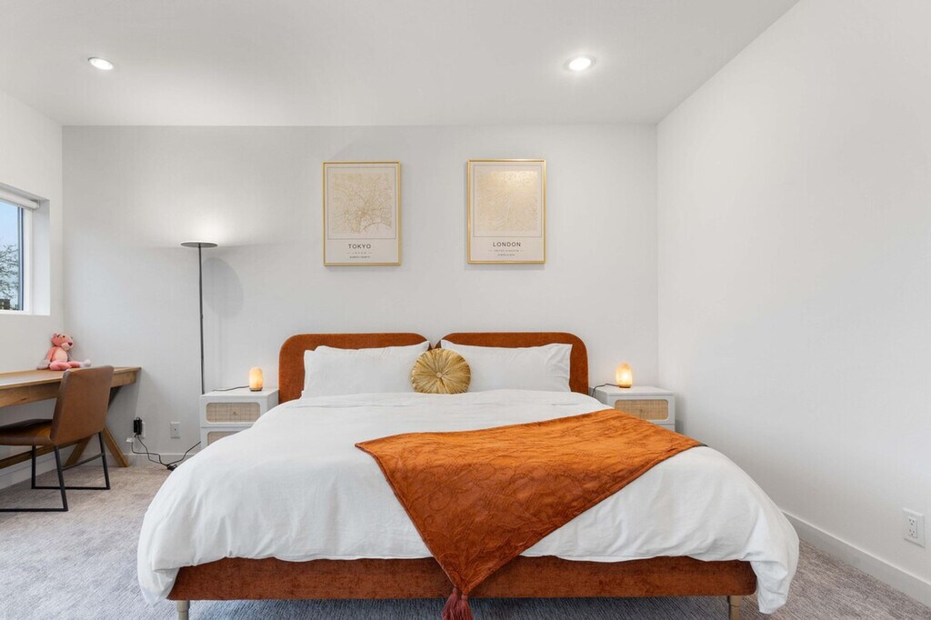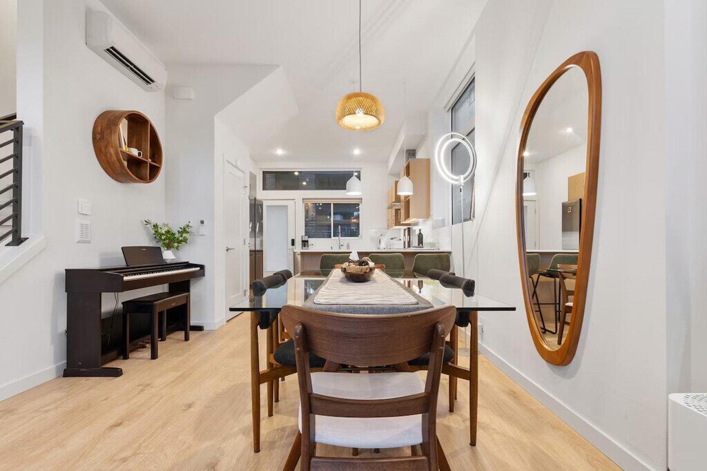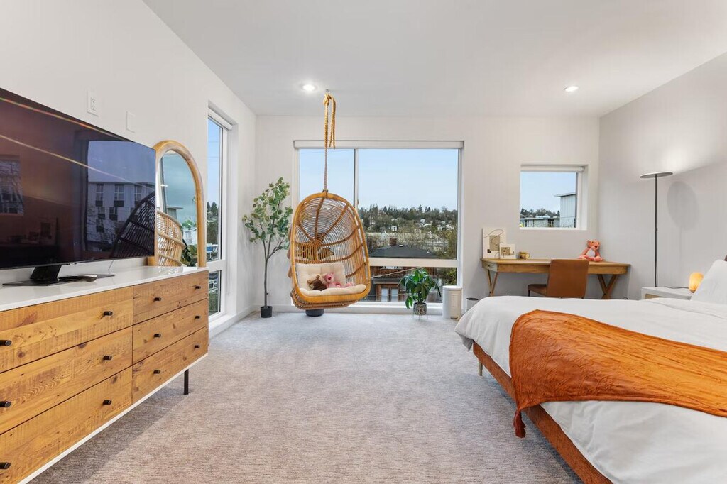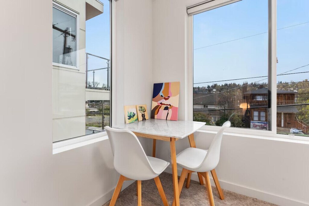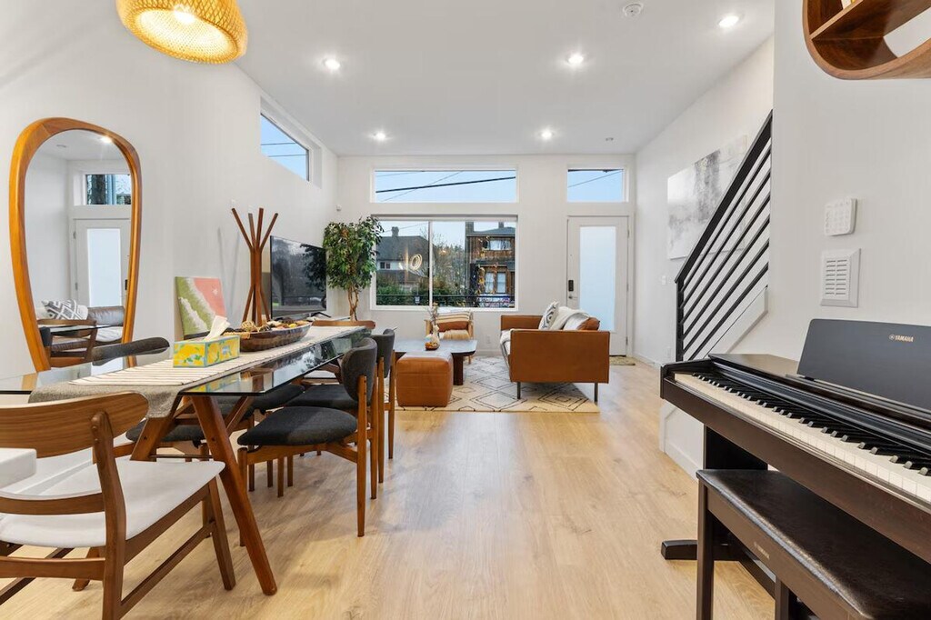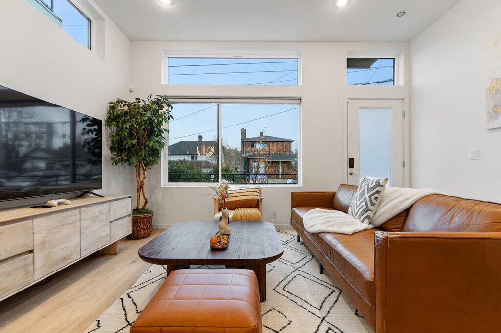 Feel at home in this stylish 3-bedroom, 2.5-bathroom home located in a prime location with easy access to Seattle's landmarks by train, bus, or car. This bright and spacious modern home offers an elegant blend of comfort, style, and functionality. Featuring 3 cozy bedrooms and 2 sleek bathrooms, it’s ideal for couples working remotely or families seeking a memorable getaway. One of the highlights of this property is the private rooftop deck, where you can soak in breathtaking views of the Cascade Mountains and majestic Mount Rainier. One off-street parking spot is included, and there is plenty of free street parking available. Nestled in the vibrant Judkins Park neighborhood, you're just minutes from downtown Seattle, yet surrounded by peaceful parks, local cafes, and nature trails. This is your perfect launchpad for adventure and relaxation. Smoking is prohibited on the property. The mini split air conditioner is in the living area and in the master suite (the top floor), and the middle floor has fans. Dedicated workspaces are available for two. Registration Number: STR-OPLI-24-002278