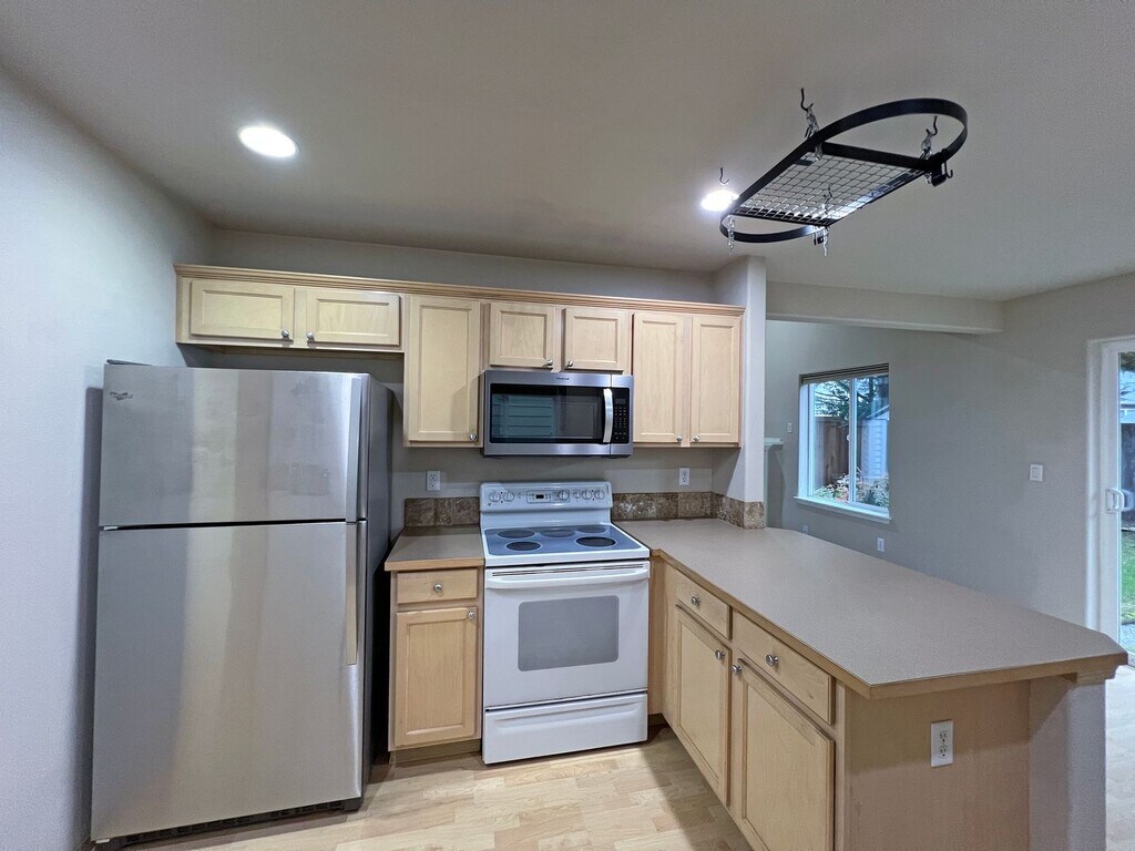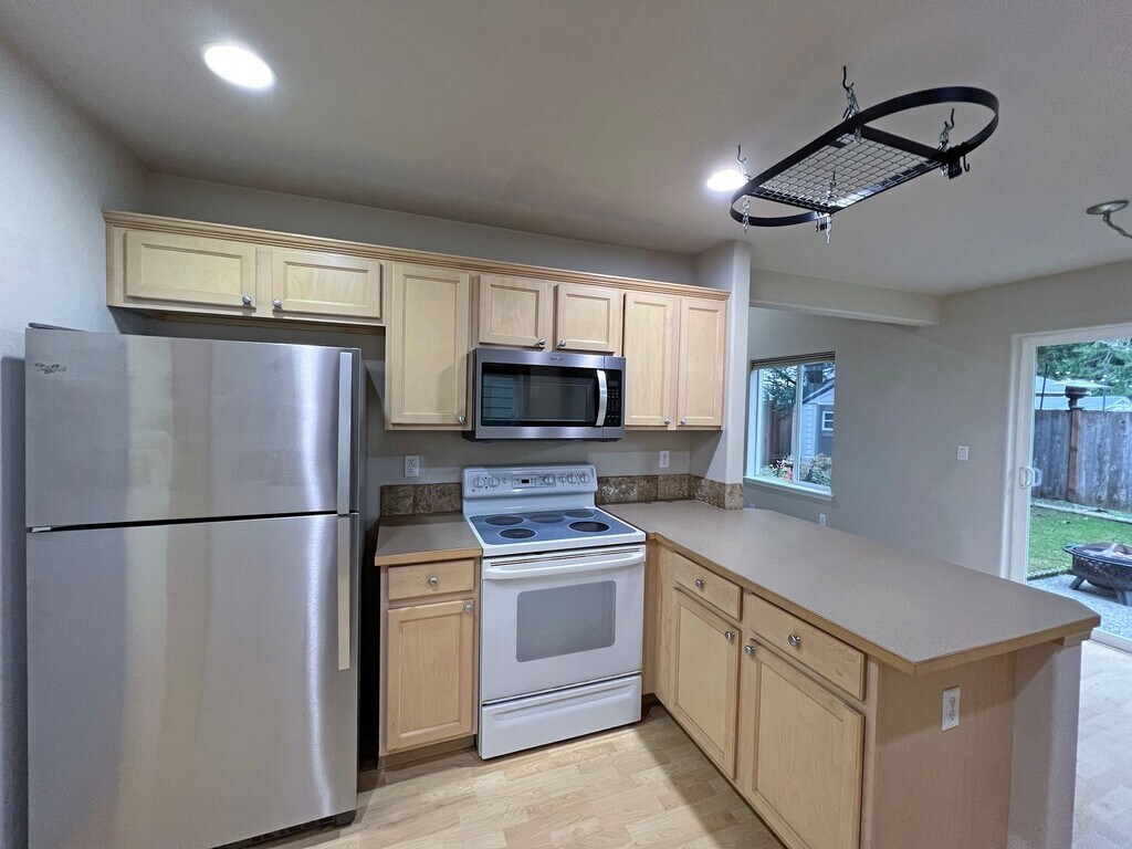 Welcome home to this beautifully maintained 3-bedroom, 2-bath residence nestled in the desirable The Woods at Lake Wilderness community of Maple Valley. Built in 2003, this inviting home offers comfort, functionality, and timeless appeal. Step inside to a warm and welcoming living space featuring plush carpet throughout and a cozy gas fireplace—perfect for relaxing evenings at home. The thoughtfully designed layout provides three spacious bedrooms and two full bathrooms, offering flexibility for guests, a home office, or growing households. The kitchen comes fully equipped with all appliances included—refrigerator, range, dishwasher, microwave, plus washer and dryer—making this home truly move-in ready. Outside, enjoy a fully fenced backyard ideal for entertaining, gardening, or simply unwinding in your own private retreat. Located in a peaceful, established neighborhood near parks, trails, and Lake Wilderness amenities, this home combines comfort and convenience in one of Maple Valley’s most sought-after communities. Don’t miss the opportunity to make this wonderful home your own! Application Fee: $40.00 per adult Please note: Application is online and the non-refundble application fee is charged immediately. Do not apply until you have seen the property and have spoken with me directly. Please drive by first, and call me on my direct line to schedule a viewing. Kim Clifton Broker, Property Manager
