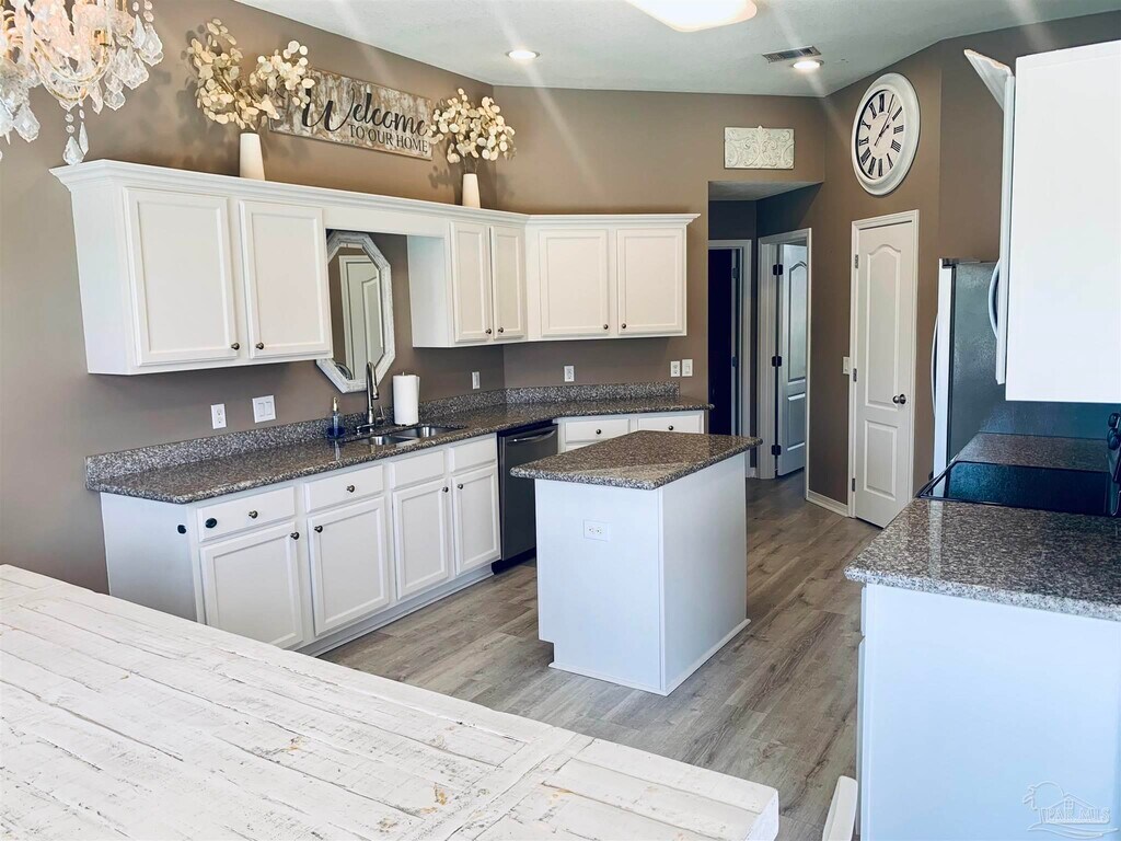 Executive home in the heart of Pace. Sparkling pool with double gate and recessed lighting around the entire outside soffits plus motion solar lights around the back yard. Freshly painted with 10 foot ceilings,recessed lighting on dimmers and a split bedroom plan for privacy. Large master suite has on suite with double walk in closets large soaker tub plus private water closet.