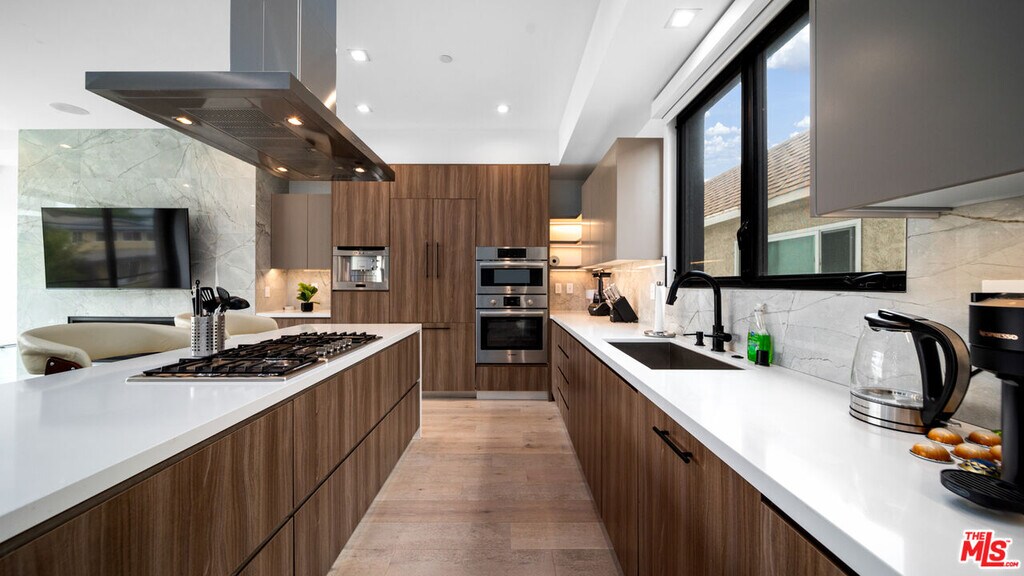 Perched in the heart of Venice, California, at the prestigious address of 2435 S Penmar Ave, awaits a magnificent architectural marvel that epitomizes the very essence of modern coastal living. This is no ordinary home; it's a luxurious sanctuary where elegance and sophistication harmoniously blend with unparalleled comfort. Offering an impressive 4 bedrooms and 4.5 bathrooms, this sprawling residence is a haven of opulence, meticulously designed for short or long-term rental.Upon crossing the threshold, you'll be immediately struck by the cascading natural light that gracefully floods the interiors, courtesy of the grand, sun-kissed windows and soaring 10-foot ceilings. Every inch of this home is a testament to artful design and meticulous craftsmanship.The ground floor is a haven of convenience, boasting a 2-car enclosed garage and guest quarters exquisitely appointed with a bedroom and a full bath, seamlessly connected to an inviting outdoor patio that beckons you to unwind in total seclusion.Journeying to the entertainment level, you'll be met by an open kitchen that is nothing short of a culinary masterpiece. Here, a designer fireplace, adorned with custom tile backsplash, exudes warmth and charm. Multi-slide pocket doors effortlessly blur the line between indoor and outdoor spaces, inviting the ocean breeze to caress your senses. It's a space where culinary artistry meets oceanic serenity.The gourmet kitchen itself is a work of art, boasting top-of-the-line Bosch appliances, including a built-in coffee machine that ensures each morning begins with a perfect cup of java.Ascending to the third floor, you'll discover two resplendent en-suite bedrooms, each bearing its own walk-in closet for indulgent storage. And just steps away, a convenient laundry room adds a touch of practicality to this sanctuary of luxury.But the crowning jewel of this extraordinary residence awaits atop the fourth level, where the primary suite reigns supreme. Here, luxury knows no bounds, as the entire floor is dedicated to your private haven. Step onto your private terrace and behold breathtaking vistas of the cityscape, mountains, and coastline. An indoor/outdoor fireplace bestows warmth and romance, while an expansive walk-in closet ensures that your wardrobe is as finely curated as your lifestyle.Beyond the four walls of this magnificent abode, you'll find yourself immersed in the vibrant Venice lifestyle. Abbot Kinney and Rose Avenue, with their eclectic mix of dining and shopping, beckon you to explore. And when the allure of the beach calls, it's just a leisurely stroll away.This fully furnished, turnkey residence is not just a home; it's a masterpiece of architectural achievement where luxury, artistry, and coastal living converge in an unparalleled display of opulence. Make it yours, and let the grandeur of Venice embrace you in its warm and stylish embrace. MLS# 26640127
