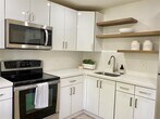 Simply enchanting! This spacious second-floor 1-bedroom, 1-bathroom unit offers beautiful lake views. Recently renovated, it features tile flooring throughout and a large screened-in balcony. This private corner condo is located in Centerpointe. Additional highlights include a generous walk-in closet in the bedroom, a remodeled kitchen with quartz countertops and stainless steel appliances, an eat-in kitchen area, a combined living/dining space, a bathroom with two entrances, and an in-unit washer and dryer. The screened-in patio also includes a convenient storage closet. Small, trained pets are welcome with a deposit. No smoking is allowed. Residents can enjoy wonderful amenities, including a clubhouse, pool, and full access to township facilities such as the Olympic-size pool, jacuzzi, saunas, billiards, theater, gym with aerobics, tennis, playground, and much more. This is the perfect location—close to Coconut Creek shops, restaurants, and everything you need.