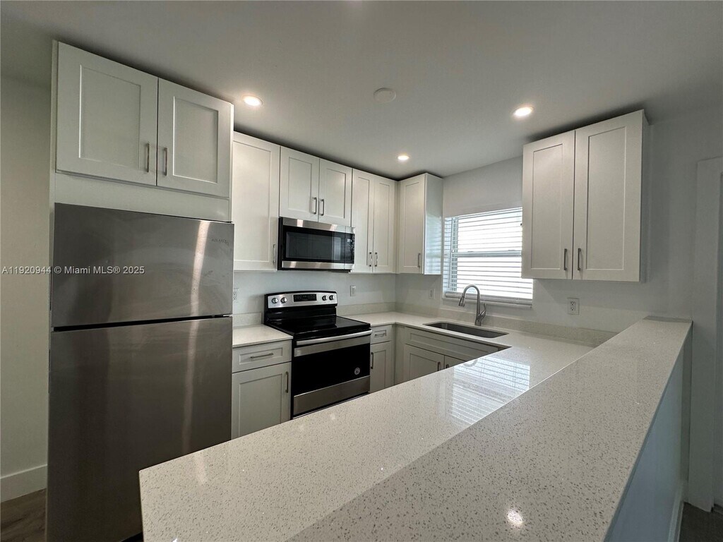 CHARMING, SPACIOUS 1 bed/1 bath apartment in a beautiful complex! Top to bottom, completely remodeled!! Unit features brand new, large kitchen w/ granite counter tops, ss appliances & wood flooring throughout. Central AC, impact windows & plenty of closet space! 1st floor unit w/ access to outdoor area. Includes 1 assigned parking space right in front. Property is well maintained & has a nice community courtyard/garden area - great for pets. Laundry is on site. Maintenance, water, waste, sewer, pest control included in rent. Centrally located, great parks & schools nearby. Walking distance to shops, restaurants, Downtown Hollywood, Hollywood Art Walk, Hollywood Beach Golf Club, Young Circle Park, Major highways such as A1A, US1, I-95 etc. 10 mins from Hollywood Beach! Handicap Accessible.