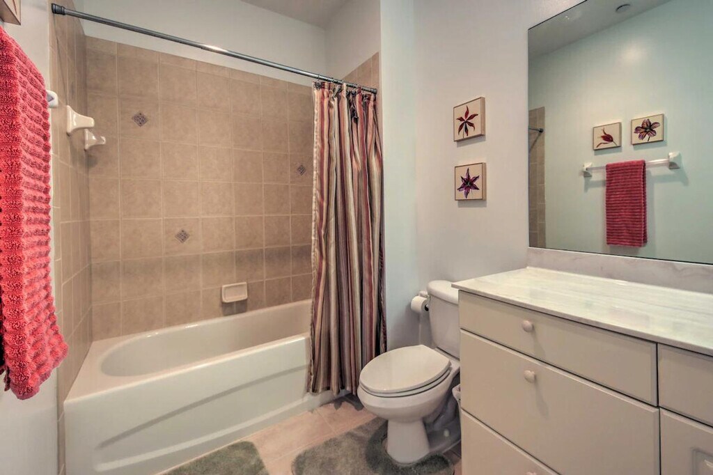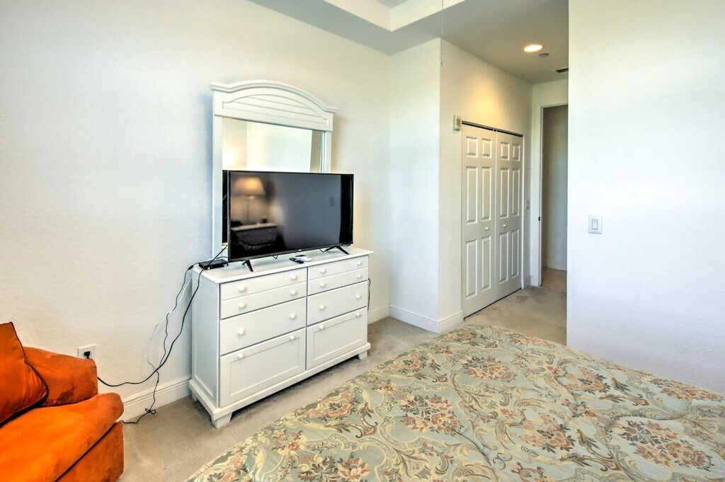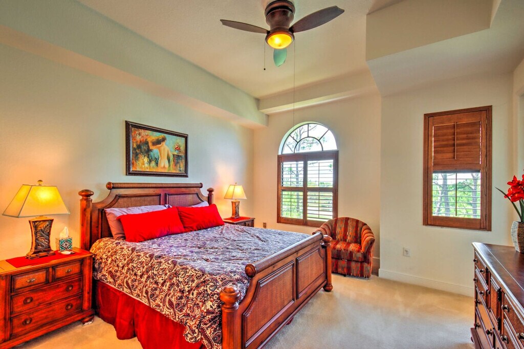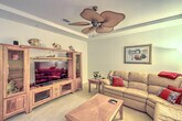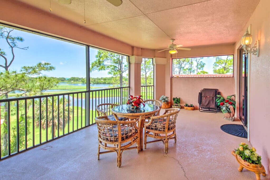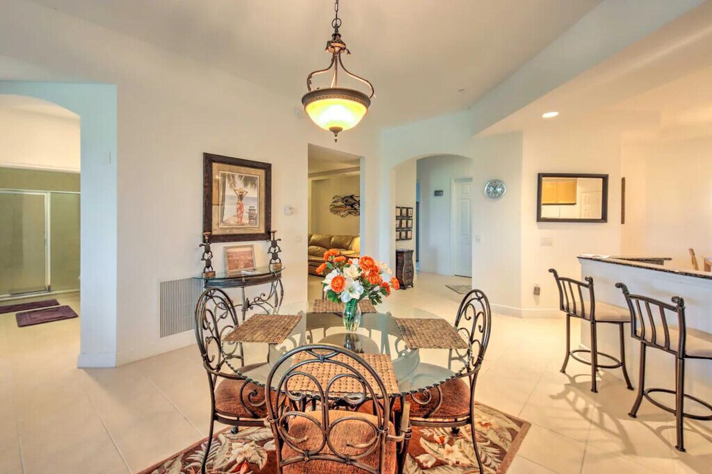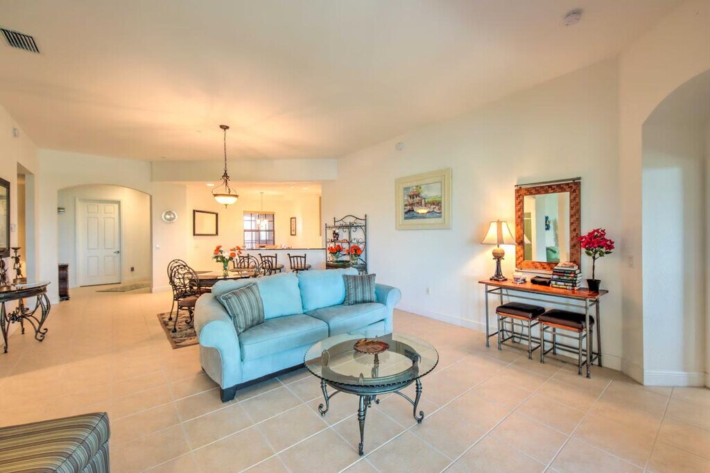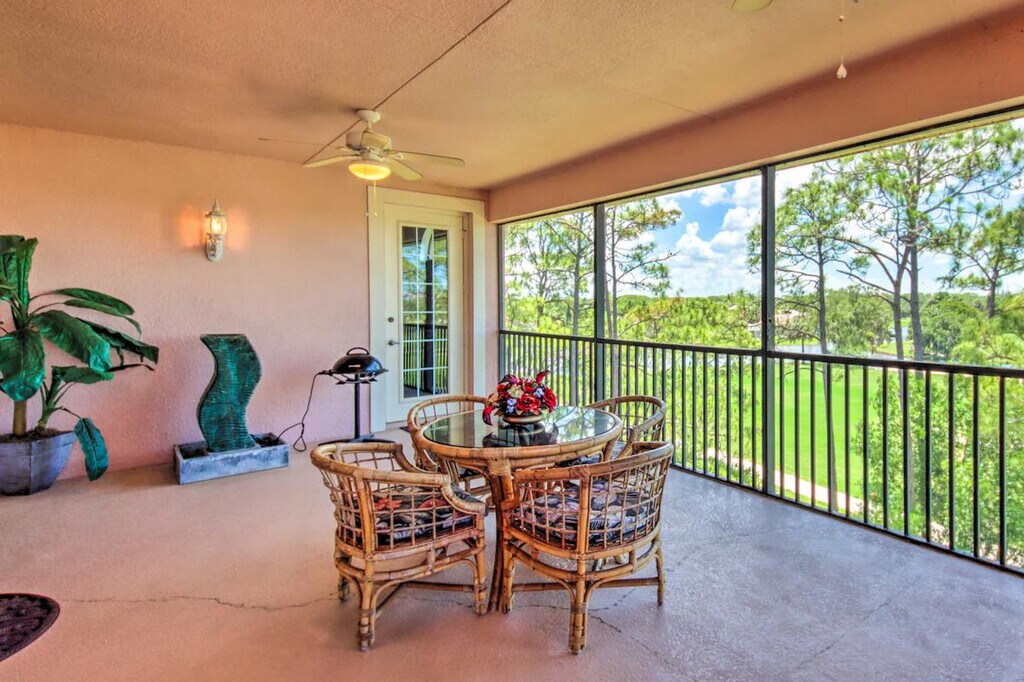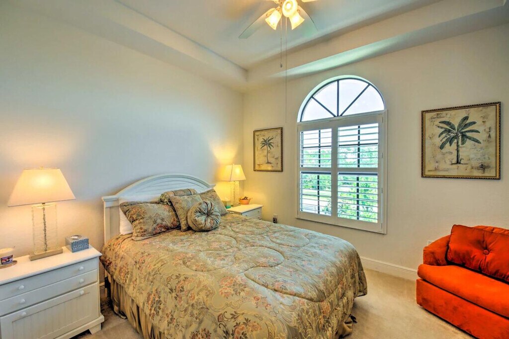 Feel at home in this 2-bedroom, 3-bathroom condo in Punta Gorda, perfect for an escape to the Sunshine State. Located right on the Burnt Store Marina Country Club, this 2,147 sq ft condo is accessible via elevator. This condo provides a fully equipped kitchen, a family room with a large sectional sofa, and a screened lanai with a dining area. The kitchen includes a dishwasher, cooking basics, blender, toaster oven, toaster, coffee maker, knife set, dishware, and flatware. Additional features include 2 dining tables, 3 flat-screen TVs with cable, an en-suite bathroom, ceiling fans, a golf course view, an outdoor dining area, free Wi-Fi, central air conditioning, linens and towels, and a washer and dryer. Parking is available in the driveway for 2 vehicles and in the garage for 1 vehicle. Walk to the golf course and work on your golf swing, or head into Downtown Punta Gorda for an al-fresco dinner near the marina. No events, parties, or large gatherings are allowed. Guests must be at least 25 years old to book. No smoking and no pets are allowed. A photo ID may be required upon check-in. [SI]
