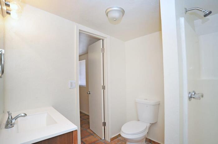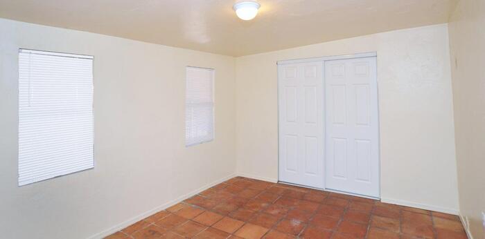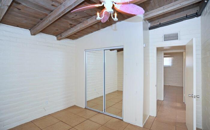 Charming home on large lot with 4 bedrooms and 2 bathrooms. Spacious living room with open beam ceiling, skylight & ceiling fan. Kitchen has flat top electric range, dishwasher, disposal, & side-by-side refrigerator with ice & water dispenser. Tile flooring throughout entire home (no carpet). Has AC. Double French glass doors lead from living room to covered patio & large back yard with 1 storage shed. Front & back yards are completely fenced. Enclosed laundry room with washer & dryer off the carport. Great location close to shopping, restaurants, and all the amenities Central Tucson has to offer. 1 year minimum lease. Non-smoking home. Renters insurance required. Application fee is $45 per adult. Up to 2 pets considered - call listing agent for pet policy. This property allows self guided viewing without an appointment. Contact for details.