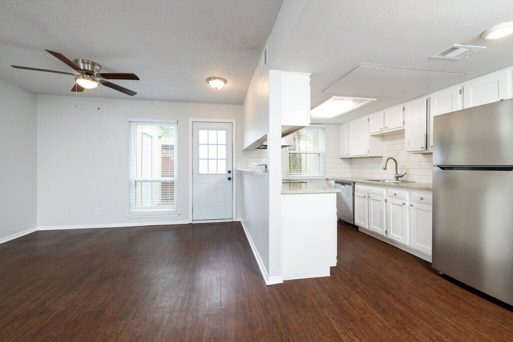 Introducing a remodeled townhome in the heart of Arlington, TX. This 2 bedroom, 2.5 bathroom unit features modern upgrades such as granite counters, energy-efficient windows, stainless steel appliances including a built-in microwave and fridge. The sleek design is complemented by LED lighting and updated plumbing fixtures throughout. Enjoy the convenience of six closets through out, a separate laundry room and lockable storage shed for added comfort. Covered parking ensures your vehicle stays protected, while landscaping maintenance and water service are included for your convenience. Don't miss out on this opportunity to experience luxury living in a prime location.