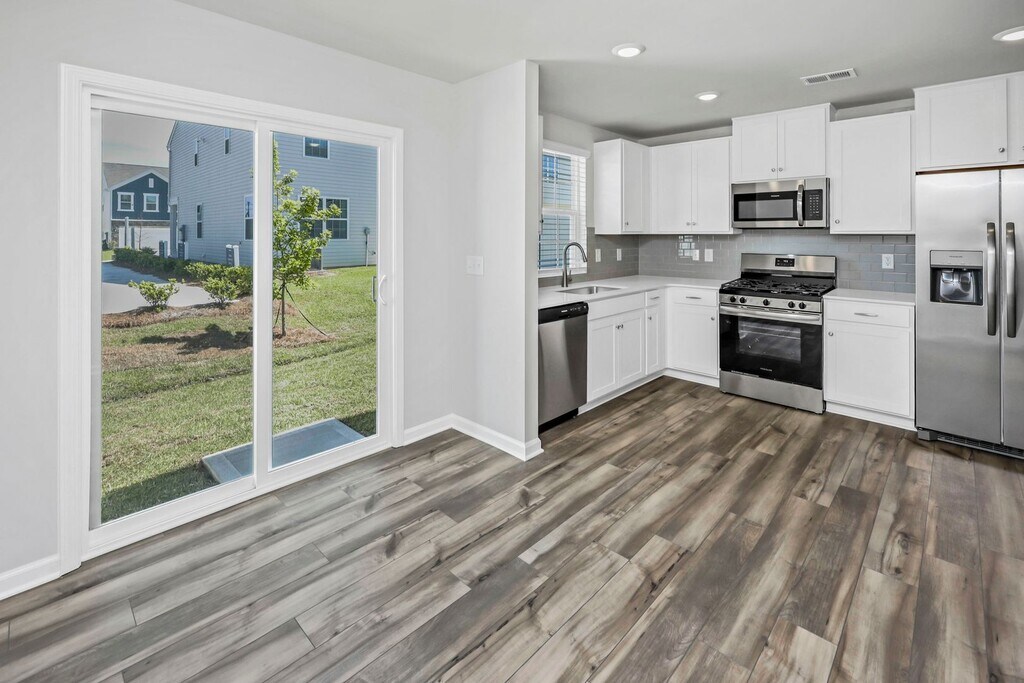 Welcome to 244 Bones Road, a beautifully designed new construction 3-bedroom, 2.5-bath Denali plan townhome located in the heart of Gilbert, South Carolina. This exceptional home blends modern finishes, functional design, and low-maintenance living, all within close proximity to Lake Murray, top-rated schools, local shopping, and a short drive to Downtown Columbia. The main level features an open and inviting layout enhanced by durable wood-inspired luxury vinyl plank flooring and a seamless flow from the living space to the backyard, ideal for both everyday living and entertaining. The kitchen is thoughtfully appointed with elegant quartz countertops, white shaker-style cabinetry with hardware, a classic subway tile backsplash, and a full suite of stainless-steel appliances, including a gas stove, microwave, and dishwasher. Generous counter space and a modern layout make this kitchen as practical as it is stylish. Upstairs, all bedrooms are privately situated, creating a quiet retreat from the main living areas. The spacious owner’s suite includes a large walk-in closet and a well-appointed ensuite bathroom featuring a double vanity and an oversized shower. Two additional bedrooms share a conveniently located full bathroom, providing comfort and flexibility for family, guests, or a home office. This thoughtfully designed townhome combines impressive included features with a contemporary layout, creating a comfortable and refined living experience. Enjoy the ease of a low-maintenance lifestyle in a desirable location—your new home awaits at 244 Bones Road. * 1 animal allowed *