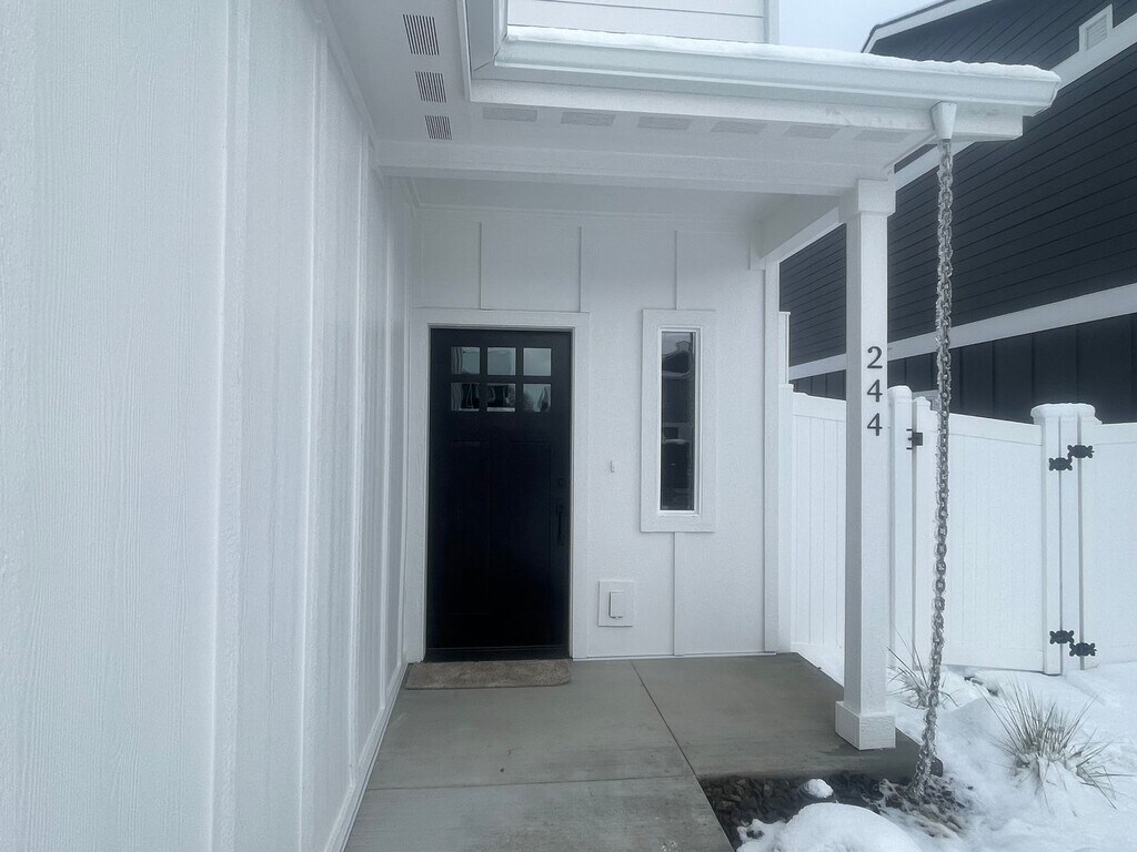 Welcome to the Brand New Hayden Townhome, a stunning new construction located in the heart of Hayden, ID. This home boasts three spacious bedrooms and 2.5 well-appointed bathrooms. The interior is designed with LVP flooring and quartz countertops, adding a touch of elegance to the space. The home is equipped with a gas forced air furnace and central A/C, ensuring comfort in all seasons. The electric fireplace adds a cozy touch to the living area, perfect for those chilly evenings. The exterior features a covered front patio, ideal for enjoying a morning cup of coffee or an evening sunset. The fenced backyard provides a private outdoor space for relaxation or entertaining. The oversized one-car garage offers ample storage or parking space. This home is a perfect blend of style, comfort, and convenience. Come and experience the best of Hayden living in this brand new townhome.
