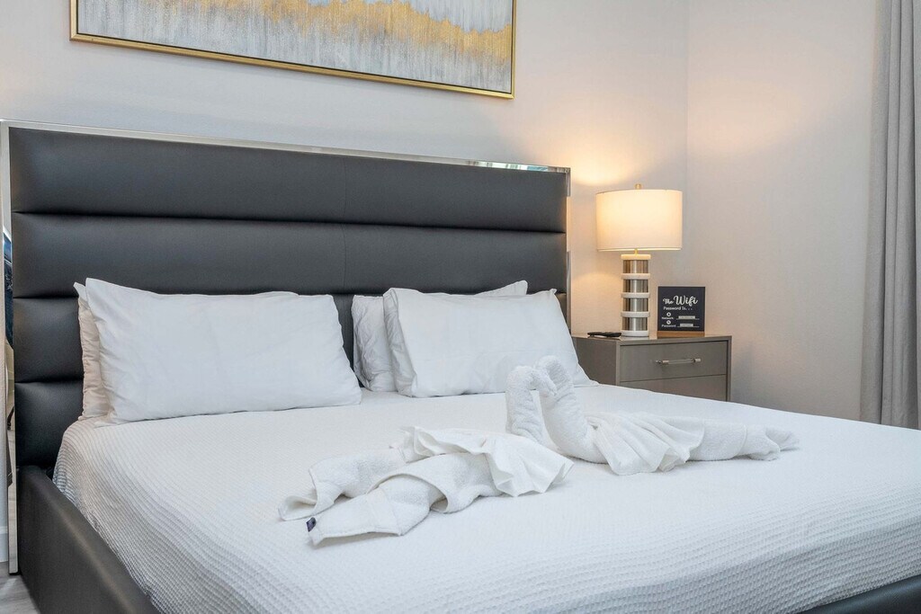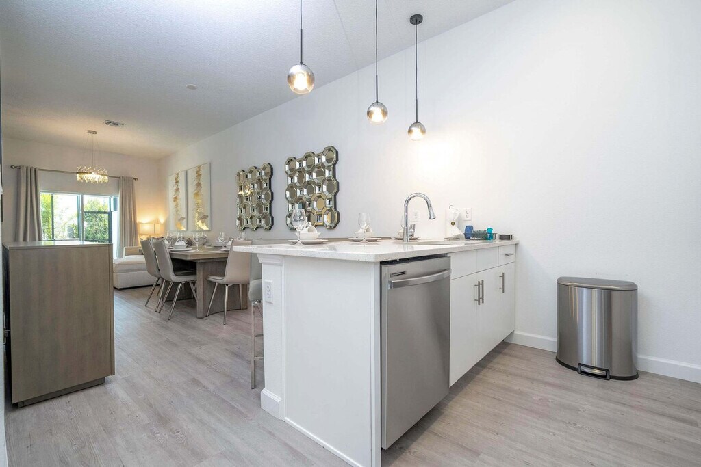 Experience ultimate Florida magic in this upscale 5-bedroom villa, your perfect family holiday retreat near Disney's world. Feel at home in this spacious oasis, ideally nestled in the vibrant and peaceful community of Davenport, just minutes from the heart of Disney's enchanting adventures. Designed to deliver an unforgettable Florida experience, this luxurious residence offers a blend of modern sophistication and homely warmth. The spacious villa caters to up to ten guests comfortably, offering a private sanctuary for peace and relaxation. As you step through the entrance, you are greeted by a heart-warming open-concept living area, accentuated by tasteful décor, plush sofas, and a large Smart TV. Your culinary needs are thoughtfully catered to with an extravagant, fully equipped kitchen, featuring sleek countertops, a large refrigerator, dishwasher, and high-end stainless-steel appliances. Experience restful slumbers in five beautifully designed bedrooms, each adorned with plush linens and tranquillizing ambiances. The four immaculate and spacious bathrooms promise a spa-like experience featuring bathtubs, hot water, and premium toiletries. High-speed Wi-Fi, central air conditioning, heating, and Smart TVs in every room ensure your stay is seamless and convenient. Escape to your private pool outside and bask under the radiant Florida sun. Ample on-site parking is available. Nestled in the heart of Central Florida, this villa sits in Davenport, known for its ideal blend of relaxation, convenience, and proximity to world-famous attractions. Just a short drive from Disney’s Animal Kingdom, Epcot, Hollywood Studios, Magic Kingdom Park, and the Walt Disney World Resort, you’ll be perfectly positioned to experience the best of Orlando’s theme park adventures. Universal Studios, SeaWorld, and LEGOLAND are also nearby for even more family fun! Davenport is a golfer’s dream, home to several championship golf courses. Indulge in a wide variety of dining options and for shopping lovers, Posner Park Shopping Plaza and the Orlando Vineland Premium Outlets are just minutes away. Located just minutes from I-4, US-27, and Highway 192, this villa offers quick, scenic routes to theme parks, beaches, shopping centers, and dining hotspots. You can reach Walt Disney World Resort in 15 minutes, Universal Studios & Islands of Adventure in 30 minutes, SeaWorld Orlando in 25 minutes, Posner Park Shopping Plaza in 10 minutes and Orlando International Airport (MCO) in 35 minutes. You’ll find Publix, Target, and Walmart within a short drive for groceries and vacation essentials. Cocoa Beach & Daytona Beach (Atlantic Coast) are about 1 hour 20 minutes away and Clearwater & St. Pete Beach (Gulf Coast) are about 1 hour 30 minutes away. Smoking, pets, and parties or loud events are not permitted on the property to maintain the serene ambiance of our home and the surrounding community. Enjoy complete independence with contactless self-check-in and check-out via our secure electronic keypad system. Includes a separate workspace that provides a quiet spot for any professional needs. [SI]